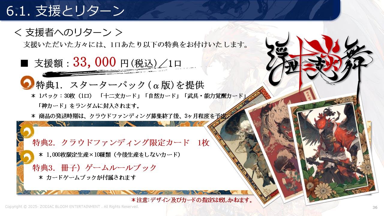 日本の伝統的な浮世絵と十二支をテーマにしたトレーディングカード『浮世十二支炎舞』で、TCG業界の新たな歴史を創ります。2026年3月の事業展開に向け、革新的なゲームルールと美しいアートでコミックやアニメ、映画まで事業を拡大し、世界展開を目標としています。ご支援、よろしくお願いします!