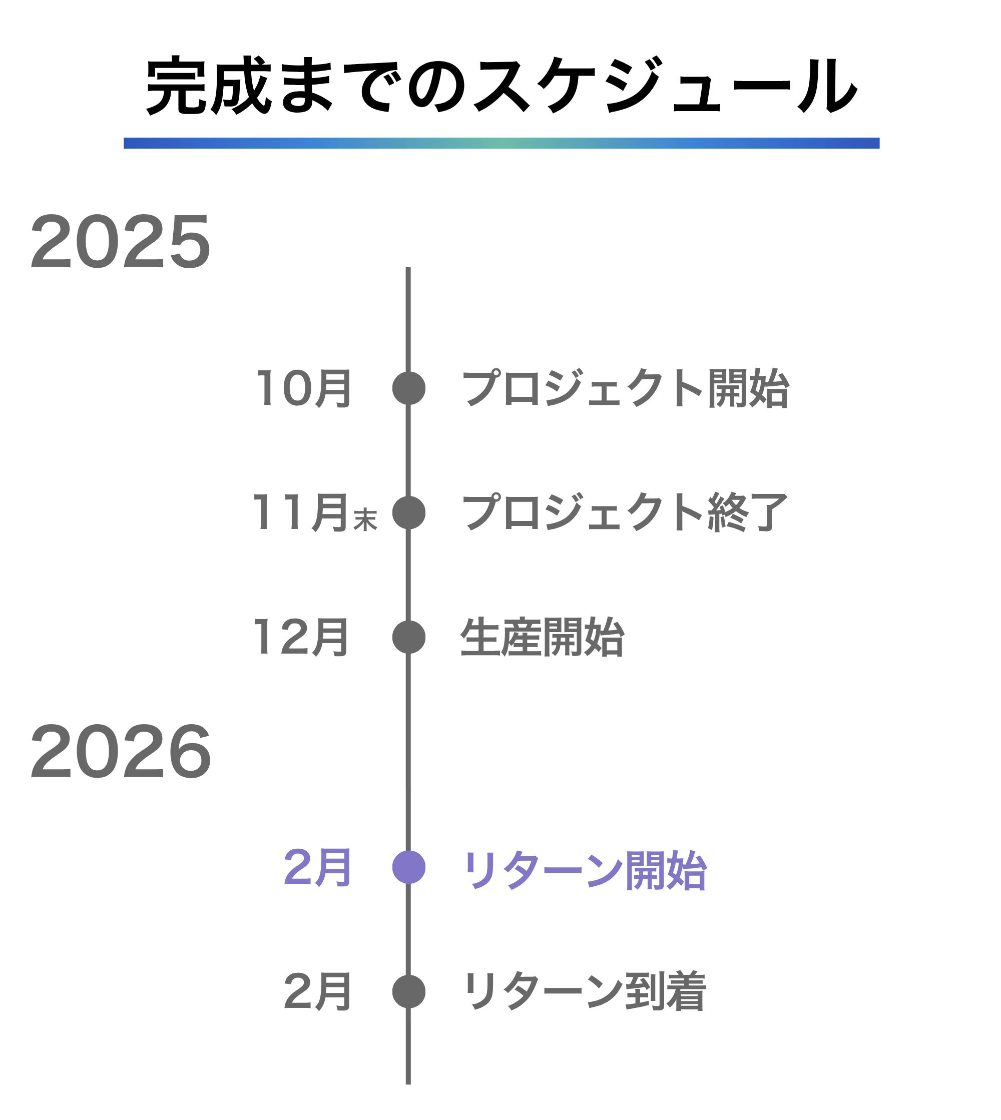 ※本文中に記載させていただいたスケジュールは、あくまでプロジェクト公開時点の予定です。クラウドファンディングを経て輸入を行う性質上、配送遅延のおそれがございます。