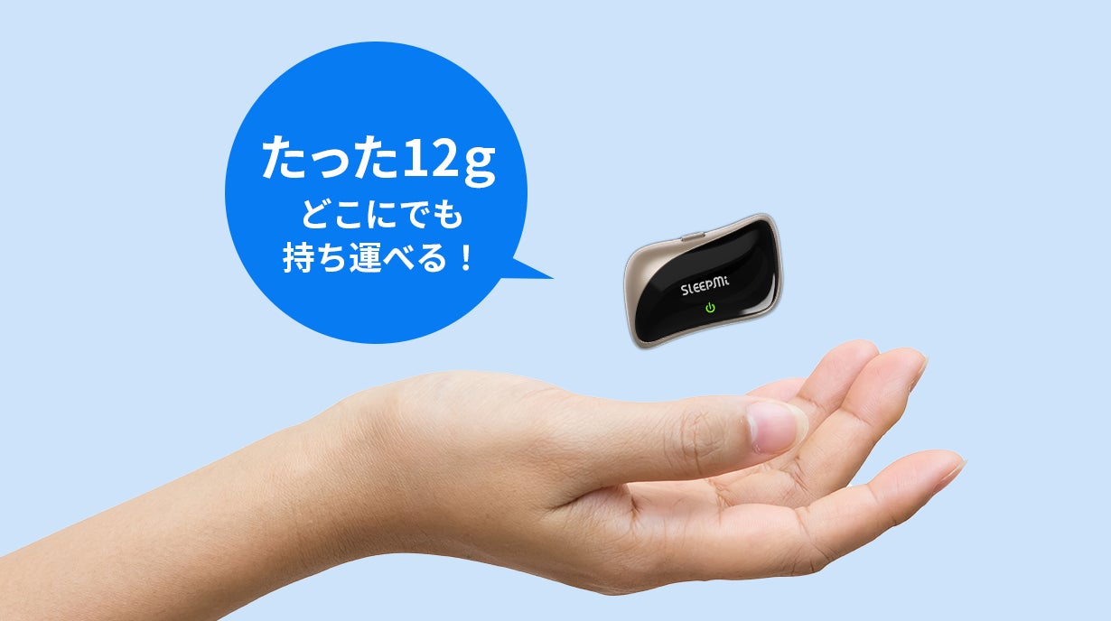 手のひらサイズで軽量。スーツケースやバッグにすっきり収まり、旅先でも快適な睡眠をサポートします。