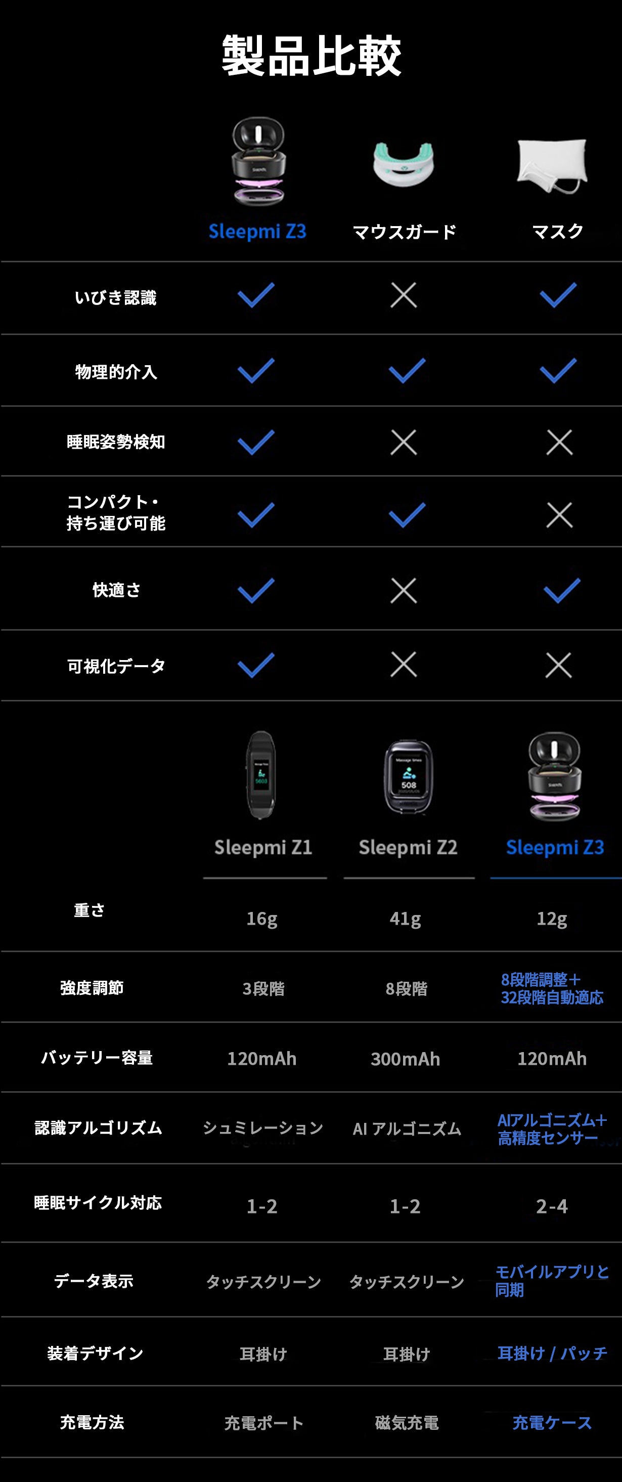 Sleepmi Z3はAIアルゴニズムで睡眠中のいびきや喉のわずかな振動を正確に検知。優しいパルス刺激で喉の筋肉をサポ-トし、自然な呼吸を促します。
