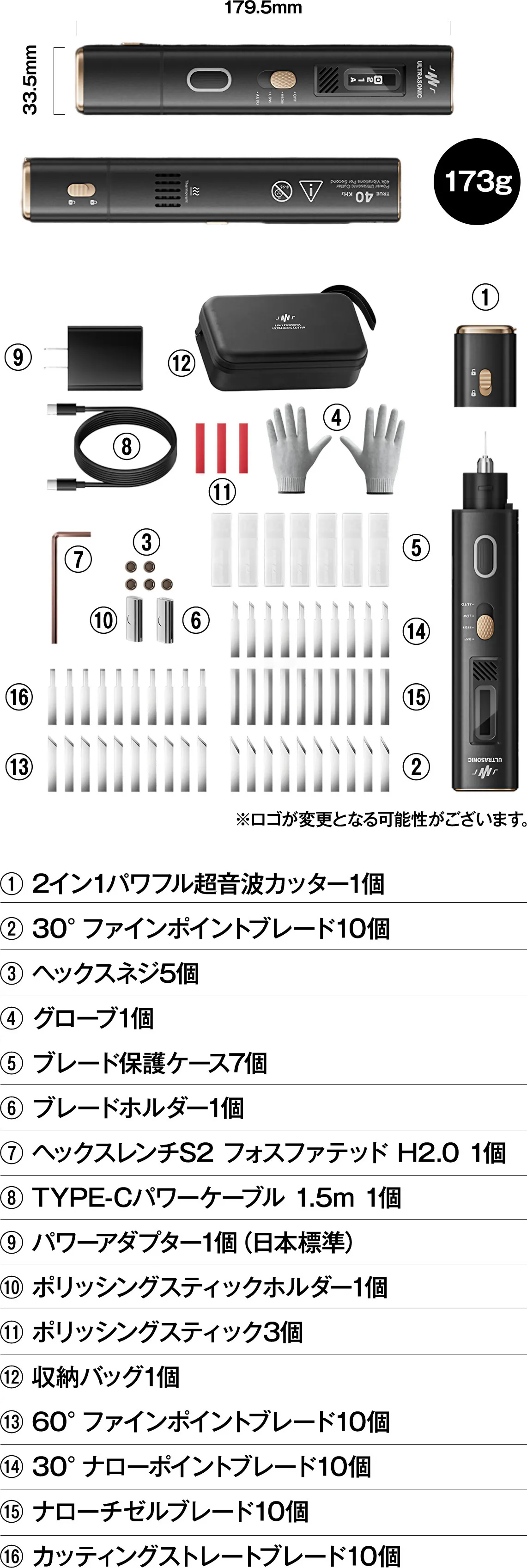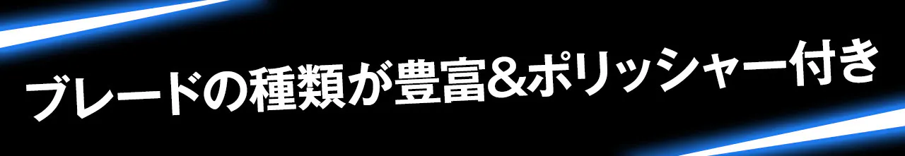 今回は5種類のブレードとポリッシングスティックもついているので幅広い素材や加工に対応できます。