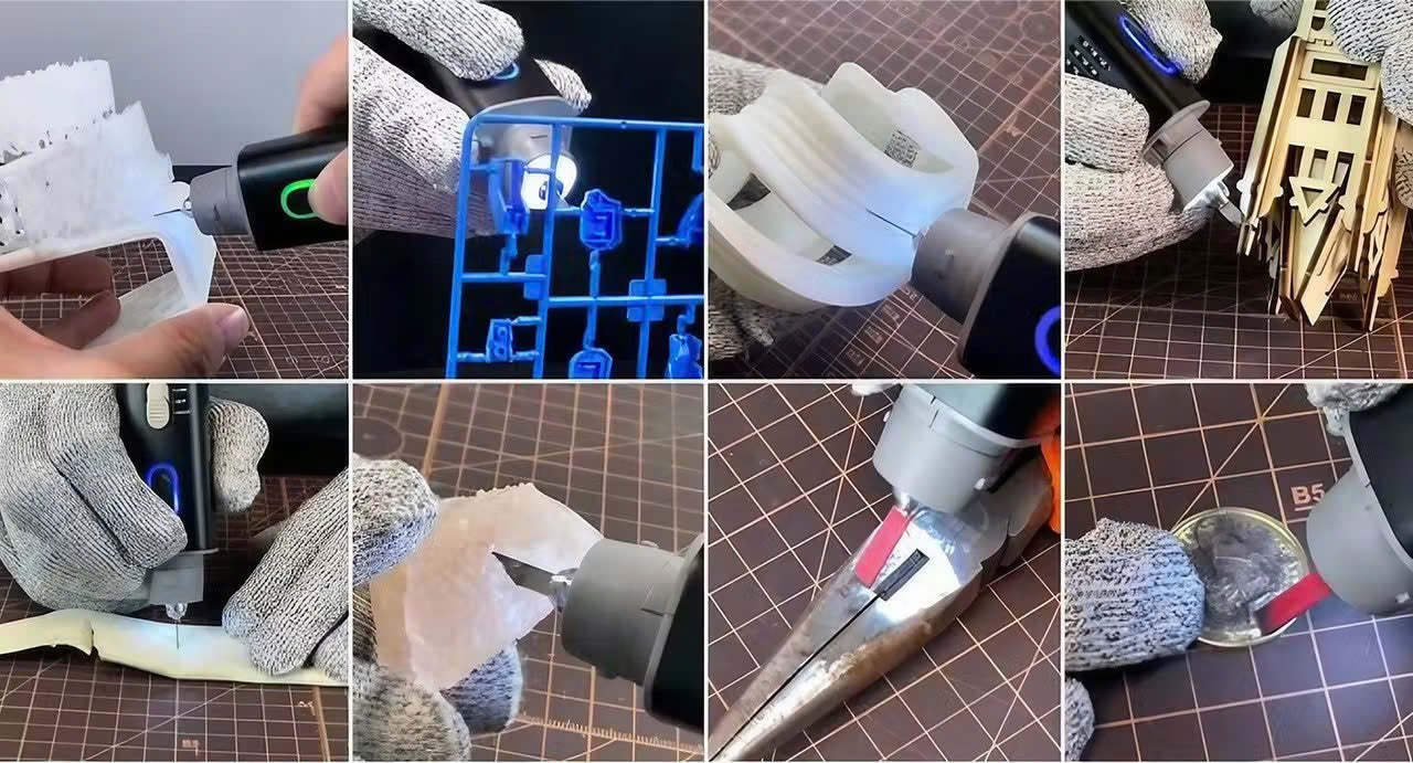 超音波技術で「切る×磨く」をスマートにこなすPENDORA CUTTERの最大の魅力は、1台で“切る”と“磨く”という2つの作業をこなせること。従来の工具では難しかった精密な加工も、超音波振動を活用することで驚くほどスムーズに。刃を当てるだけでプラスチック、木材、布など様々な素材を細かく、そして正確にカットできます。さらに、専用の研磨ヘッドに付け替えることで、仕上げ磨きや表面の調整も簡単に行えるため、作品のクオリティを一段と高めることが可能です。DIY愛好者からプロのクリエイターまで、作業効率を格段に向上させる信頼のツールとして、多くのシーンで活躍すること間違いありません。