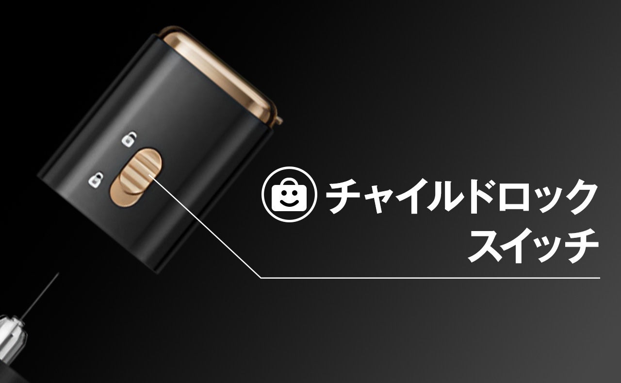 ハンドルの前面カバーには、子供やユーザーが誤ってブレードに触れて怪我をするのを防ぐためのチャイルドロックスイッチが装備されています。