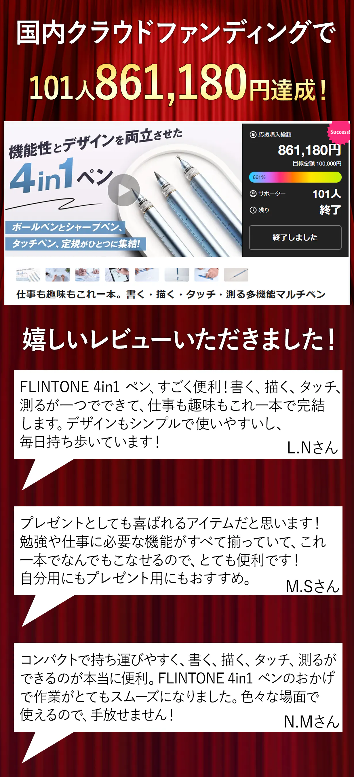 最後に、本製品を手に取った皆様に喜んでもらえるよう、 チームメンバー一同心を込めて対応していきますので、 支援よろしくお願い致します。