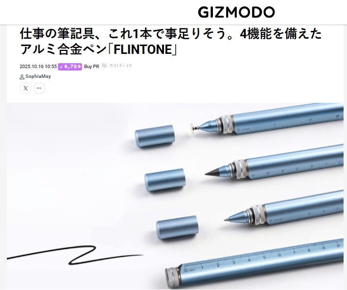 10月16日、Gizmodoで「FLINTONE 4in1 ペン 第2弾」を紹介して頂きました。