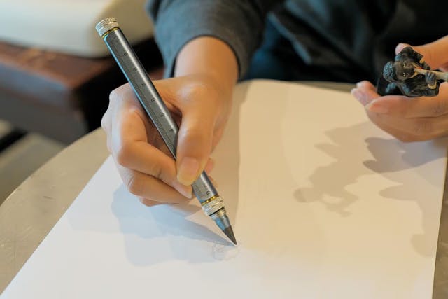 ボールペンの書き味はスムーズでスッと線が伸びます。細字でもムラが出にくく、長文でも手が疲れにくい印象でした。