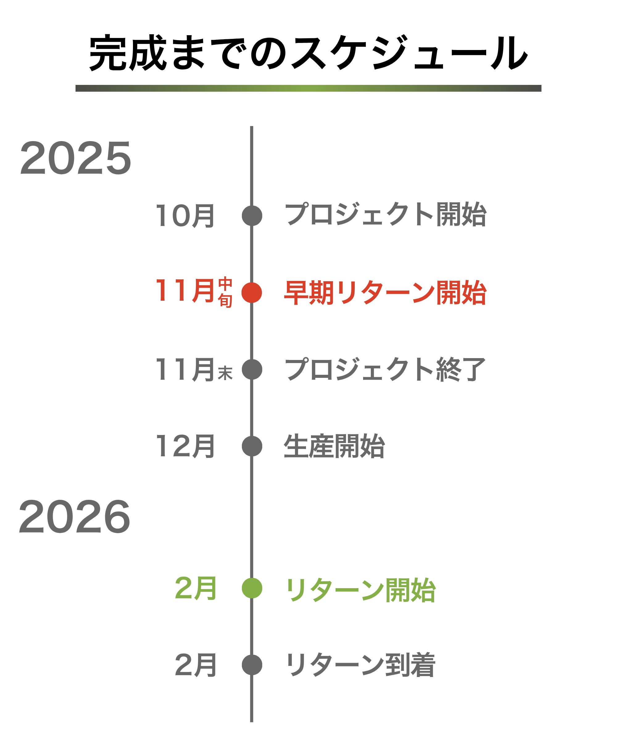 ※本文中に記載させていただいたスケジュールは、あくまでプロジェクト公開時点の予定です。クラウドファンディングを経て輸入を行う性質上、配送遅延のおそれがございます。