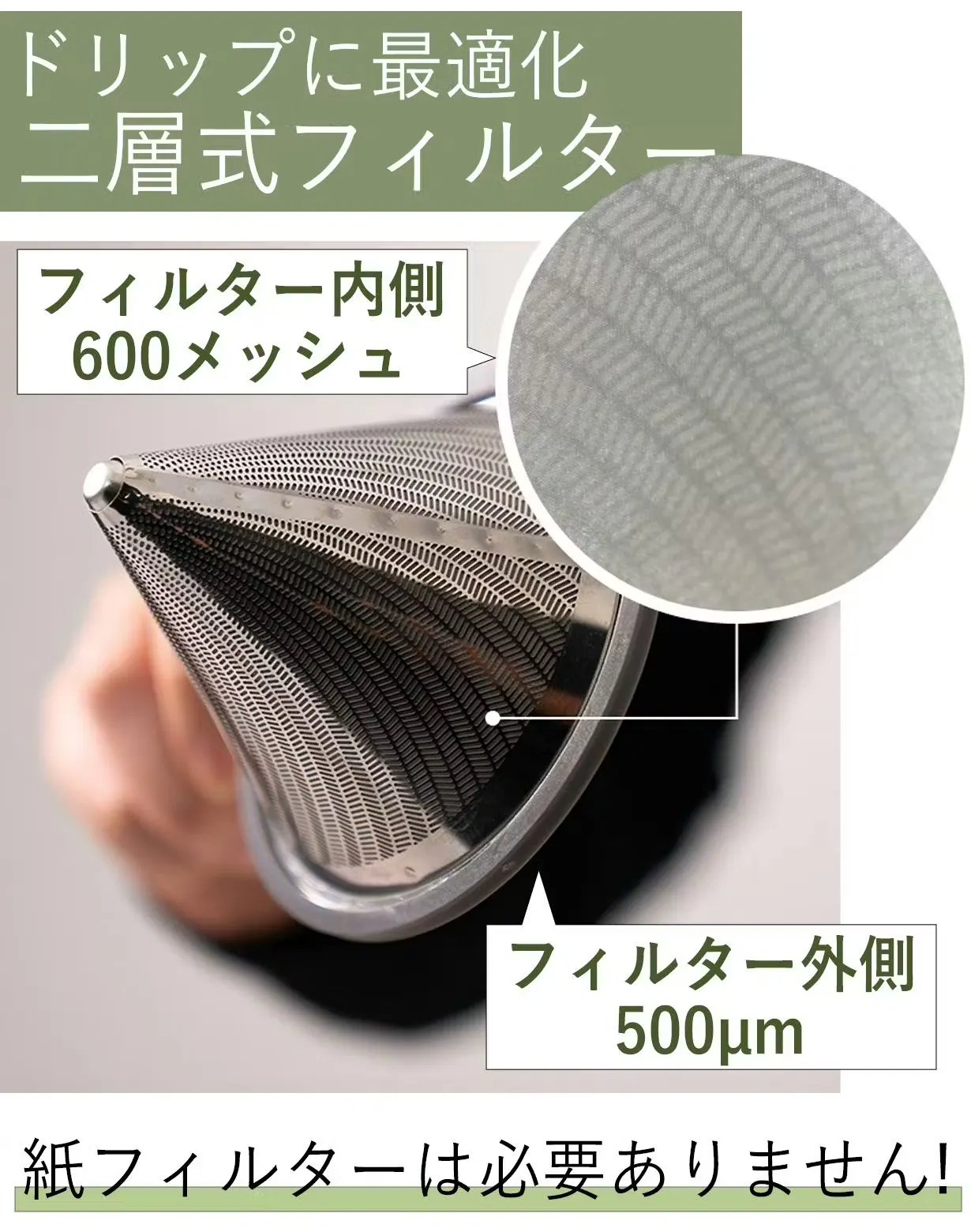 コーヒー本来の風味を楽しめる二層式フィルターを採用!