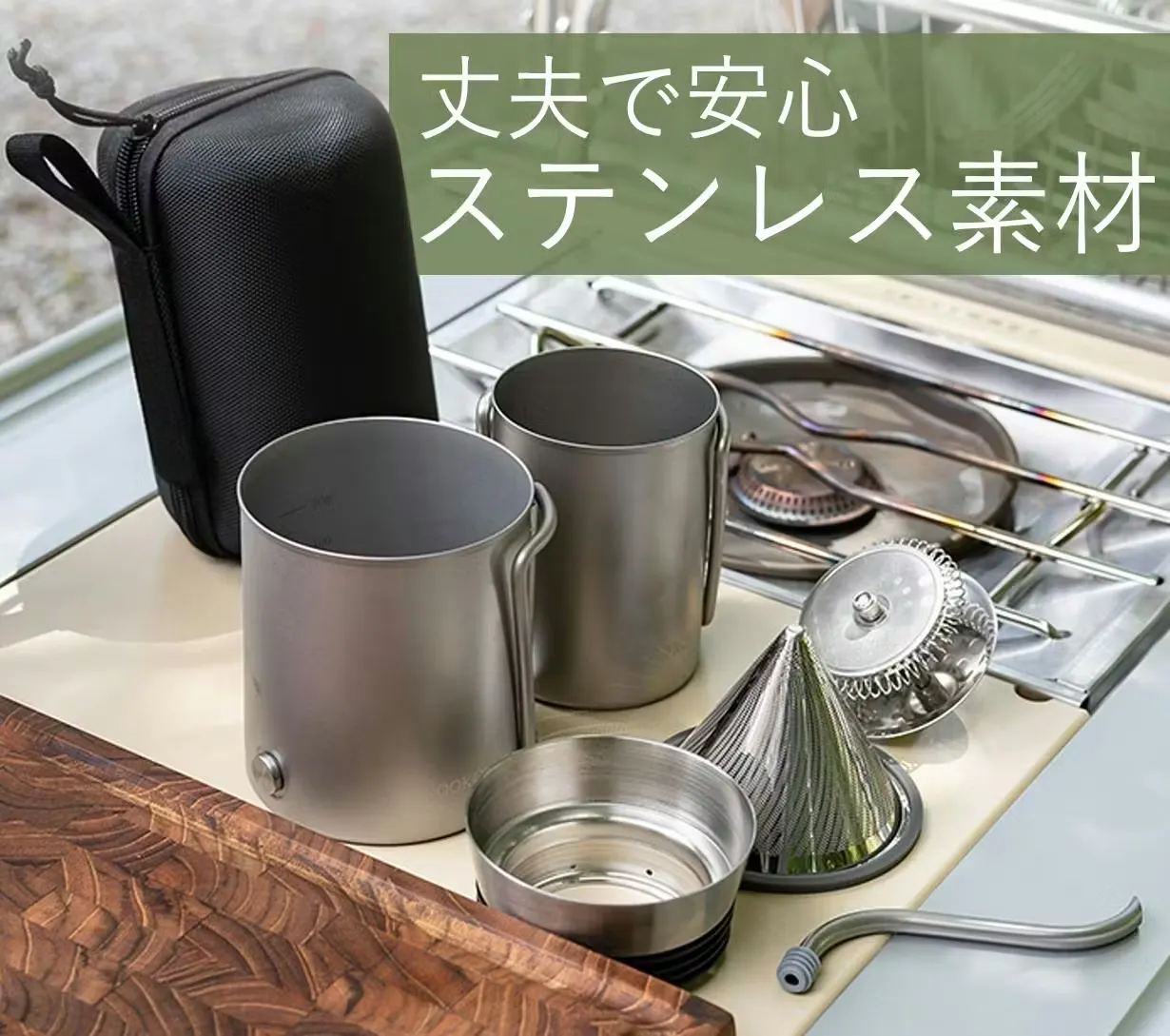 ステンレスは耐熱性があり、錆に強く清潔な、とても丈夫な素材だから、どこでも最高のコーヒーが楽しめます!