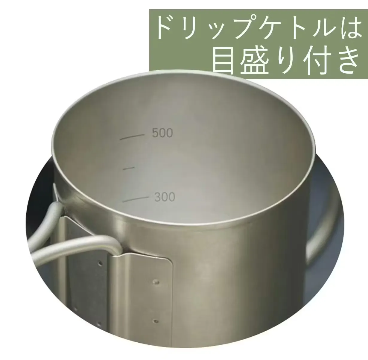 ドリップケトルの内側には目盛りがついているので、水の量も測りやすい!