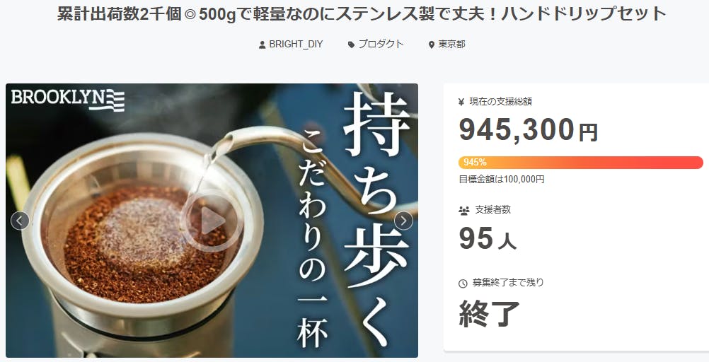 2025/12/01 00:11ご支援者様、累計出荷数2千個◎500gで軽量なのにステンレス製で丈夫!ハンドドリップセットにご興味をお持ちいただきありがとうございます。プロジェクト開始から39日目で95人ものご支援者の方々より支援頂き、無事プロジェクト終了を迎えることが出来ました。早速皆様のリターンを2026年02月末にお届けできるよう準備を始めております!皆様にご満足いただけるリターンをお届けできるよう、全力で取り組んで参りますので引き続き、「累計出荷数2千個◎500gで軽量なのにステンレス製で丈夫!ハンドドリップセット」をよろしくお願い致します。BRIGHTチーム もっと見る