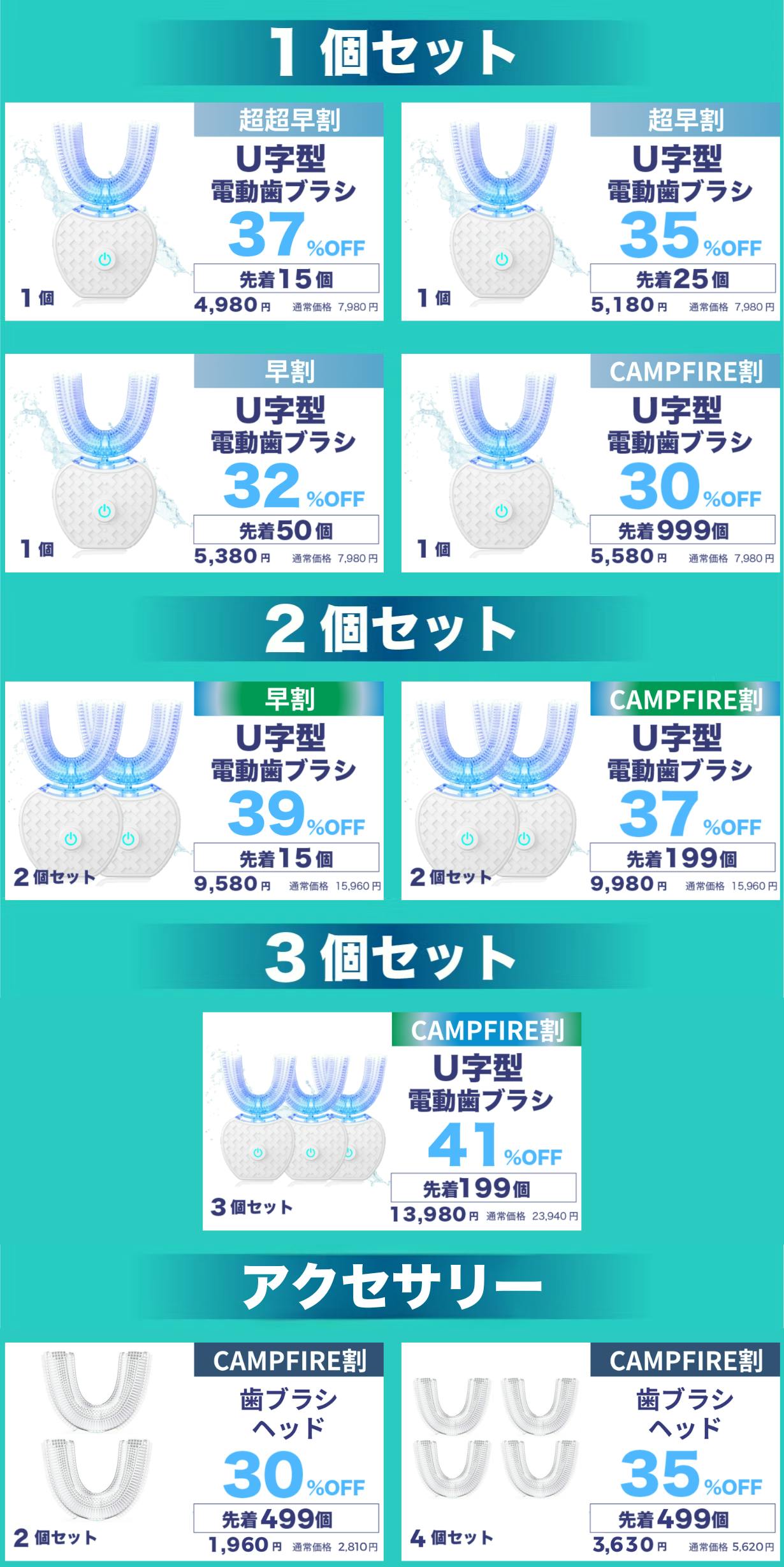 虫歯や歯周病を防ぐ一番の方法は、毎日の歯磨きを正しく続けること。 U字型電動歯ブラシなら30秒で歯磨き完了! 毎日の歯磨きが、ラクで楽しくなる。 あなたも新しいオーラルケア習慣を始めてみませんか?