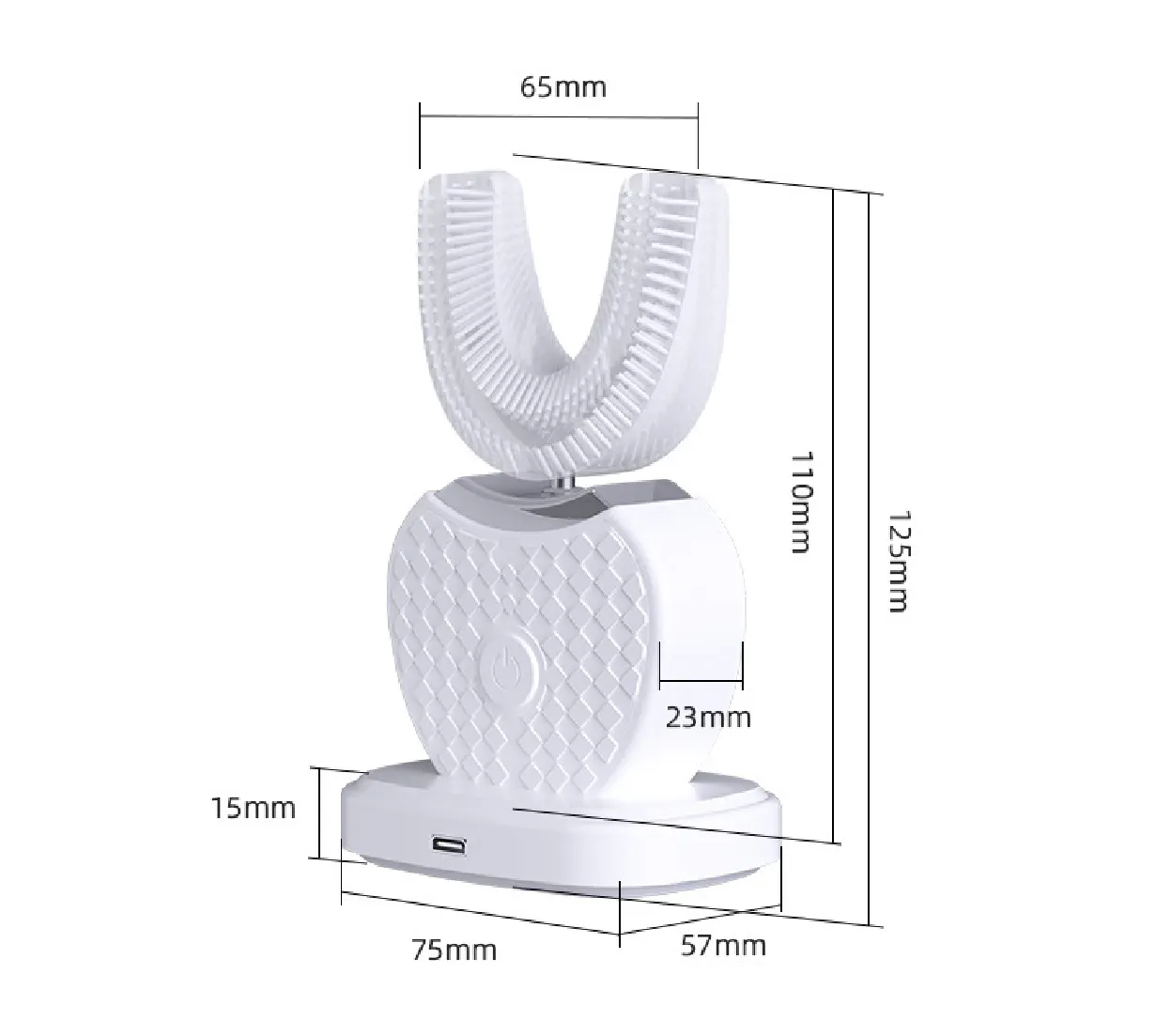 U字型のブラシが歯列全体を一度にカバー。