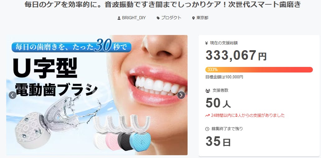 皆様、こんばんは!Bright DIYチームです。年齢を重ねるにつれて、毎日の歯磨きが体にとって負担になることがあります。手や腕の力が弱くなったり、細かい動きが難しくなったりすると、歯磨きの時間が苦痛になってしまうことも少なくありません。そんな悩みを持つ高齢の方や介護が必要な方にこそおすすめしたいのが、U字型電動歯ブラシです。誰でも簡単に使える設計で、オーラルケアの負担を大幅に軽減してくれます。U字型電動歯ブラシの最大の特長は、口に入れてスイッチを押すだけで自動的に歯を磨いてくれる点です。従来のように手で細かくブラシを動かす必要がなく、握力や腕力が弱くてもしっかりと歯を磨けます。力を入れる必要がないため、リウマチや関節に痛みのある方、指先の動きが不自由な方でも簡単に扱えるのが大きな魅力です。さらに、ブラシが歯全体を包み込むU字型構造になっているため、歯の表も裏も同時に磨ける効率の良さもポイントです。また、U字型電動歯ブラシはわずか30秒〜1分の使用で、口内全体を清潔に保つことができます。時間がかかると負担に感じやすい高齢者や、介護の現場でもこの短時間のケアは大きな助けになります。特に、体調がすぐれない日や、朝晩のケアが億劫に感じる時でも、無理なく続けられるのは大きな利点。介助する側にとっても、時間や手間が軽減されるため、スムーズなサポートが可能になります。U字型電動歯ブラシは、高齢の方々にとって「簡単」「安心」「効率的」なオーラルケアを実現する理想的なアイテムです。力がいらず短時間で磨けるこの歯ブラシは、毎日の口腔ケアを無理なく続けたい方、また介護の現場で使える便利なケア用品を探している方に特におすすめです。口の健康は全身の健康にもつながる大切なポイント。ぜひ一度、U字型電動歯ブラシを取り入れて、快適な歯磨き習慣を始めてみてください。以上、Bright DIYチームでした!ご興味のある方はこの機会をお見逃しなく!https://camp-fire.jp/projects/view/877889Brightチームは、当プロジェクトをもっと多くの方に知っていただきたいと考えております。よかったら、SNSでのシェア・拡散をお願い致します。#U字型電動歯ブラシ #brightdiyどうぞよろしくお願い致します。Brightチーム