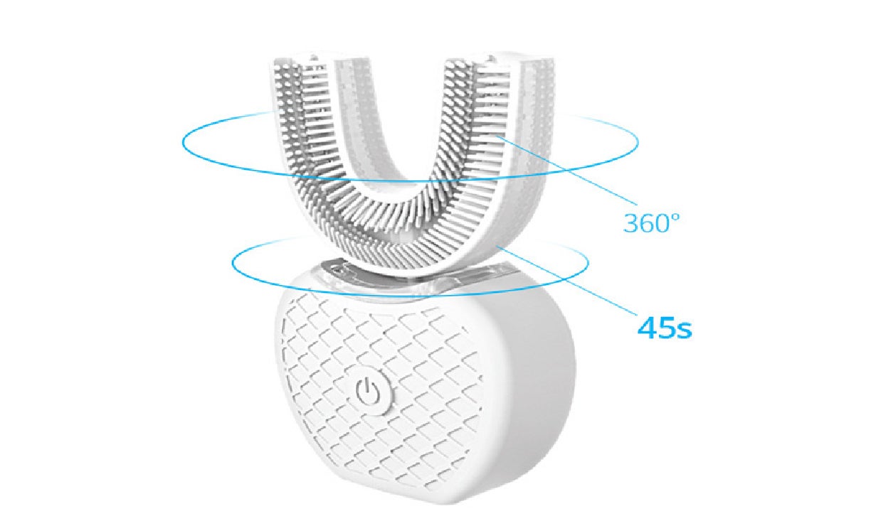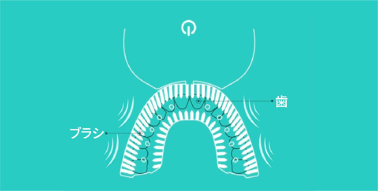 U字型ブラシが歯列全体を包み込み、超音波振動が歯垢や着色汚れを浮かせます。