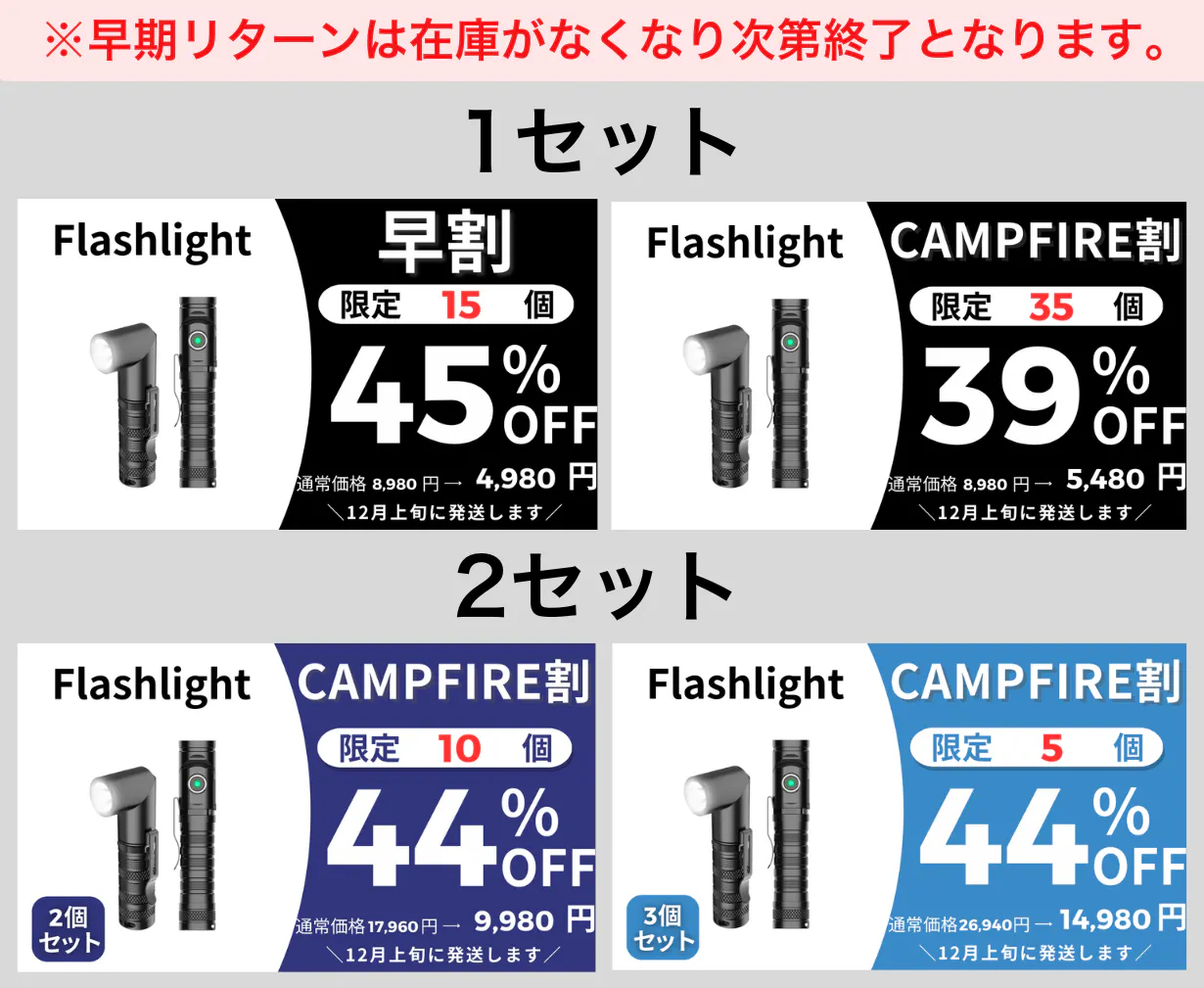 ※早期リターンは在庫がなくなり次第終了となります。
