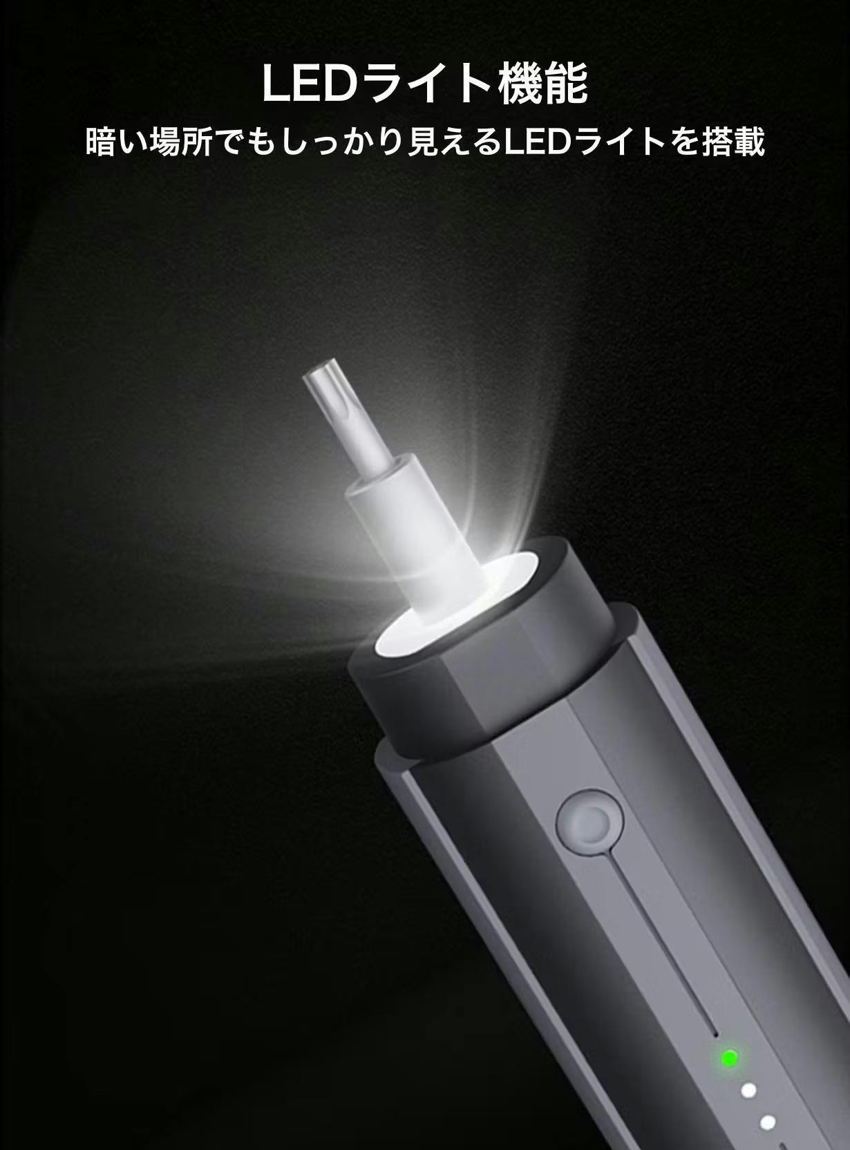 作業中に便利な機能として、デュアルスイッチとロック機能が搭載されています。ロック機能と併用すれば、スイッチを押すだけでLEDライト付きの手動ドライバーとしても使用できるのです。これにより、暗い場所や狭いスペースでの作業がぐっと楽になります。精密な作業を行う際に非常に便利な機能なので、使い勝手が大きく向上します。