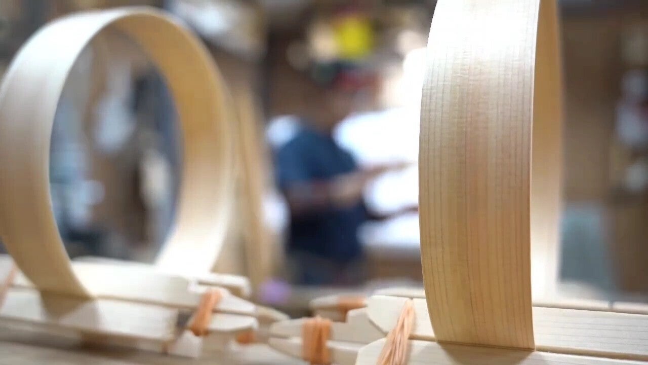 従来の秋田杉を使った曲げわっぱとは異なり、樹齢50〜60年の若いヒノキを活用することで、豊かな香りと防臭・防虫効果があります。