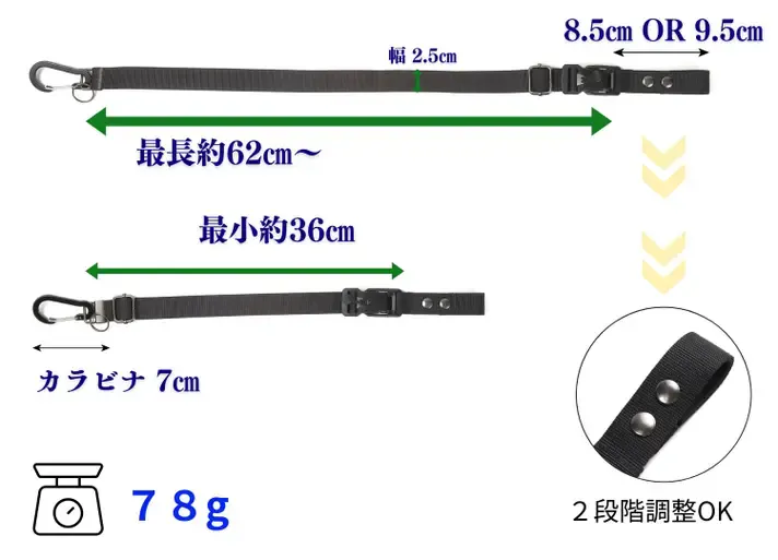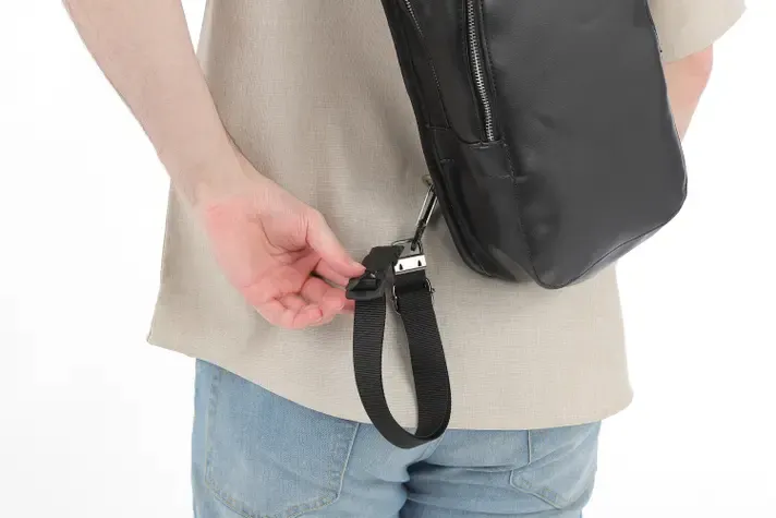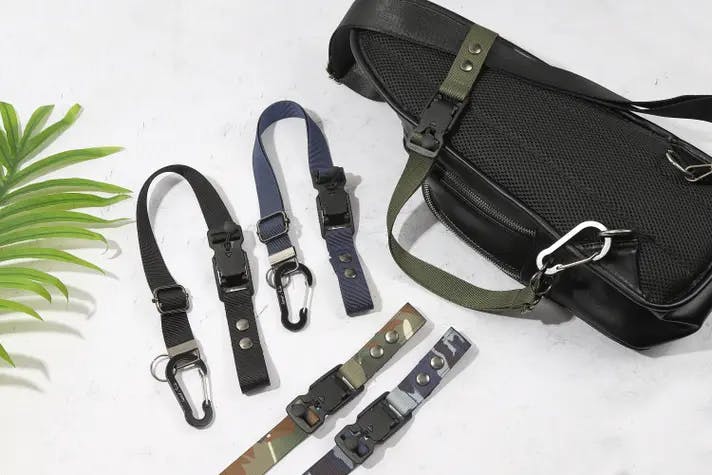ボディバッグやショルダーバッグのストラップに取り付けるだけで、すぐに使えます。