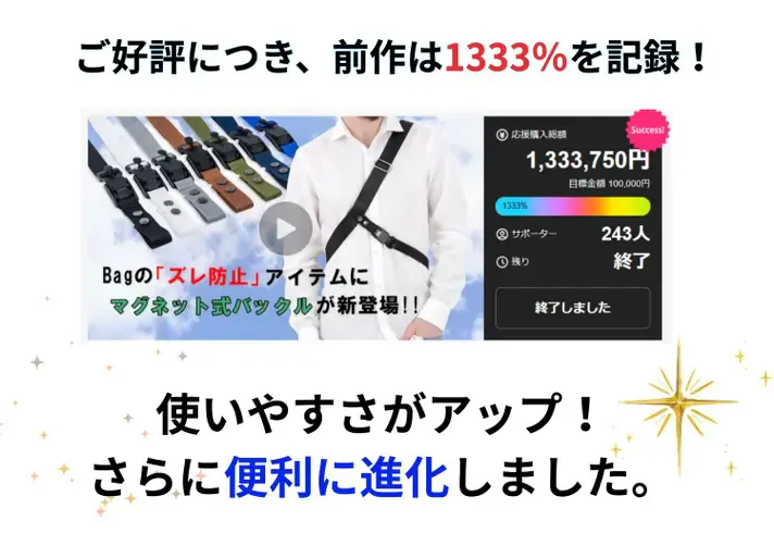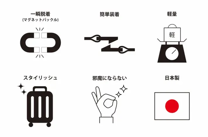 「こんなの欲しかった!」という声をヒントに、見た目の美しさだけでなく、使い心地や機能性にもこだわったものづくりを大切にしています。今回の『快適☆Crossストラップマグネット2』は、前作をご愛用いただいた皆さまからのお声をもとに、さらに進化させた自信作。バッグのズレや揺れによるストレスを軽減し、日常の移動や旅行シーンをもっと快適にするアイテムです。製品はすべて日本国内で丁寧に製作。細部にまで目を配り、手に取ったときに「おっ」と感じていただけるような仕上がりを目指しています。これからも「Made in Japan」の品質にこだわりながら、皆さまの毎日を少しラクに、ちょっと楽しくするアイテムをお届けしてまいります。