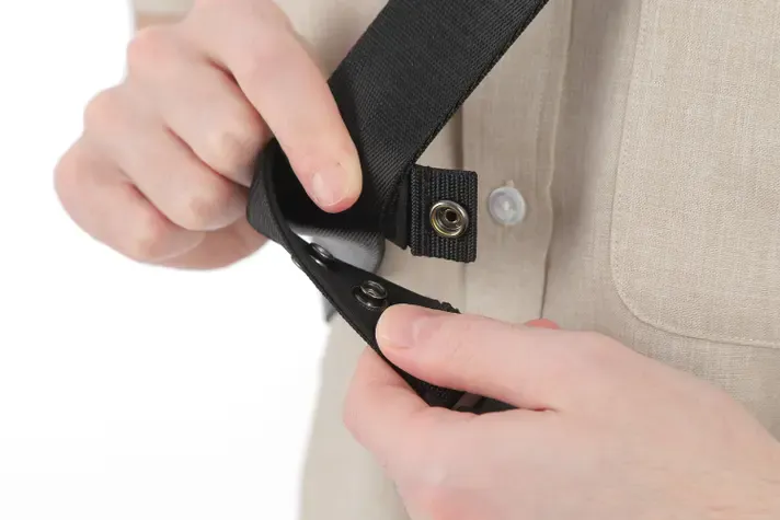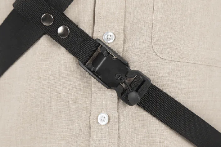 片手でも瞬時に取り付けができ、感覚的に使えるのが大きな特長です。普段使いはもちろん、動きの多いシーンでも安心・快適に使える、高性能なバックルです。
