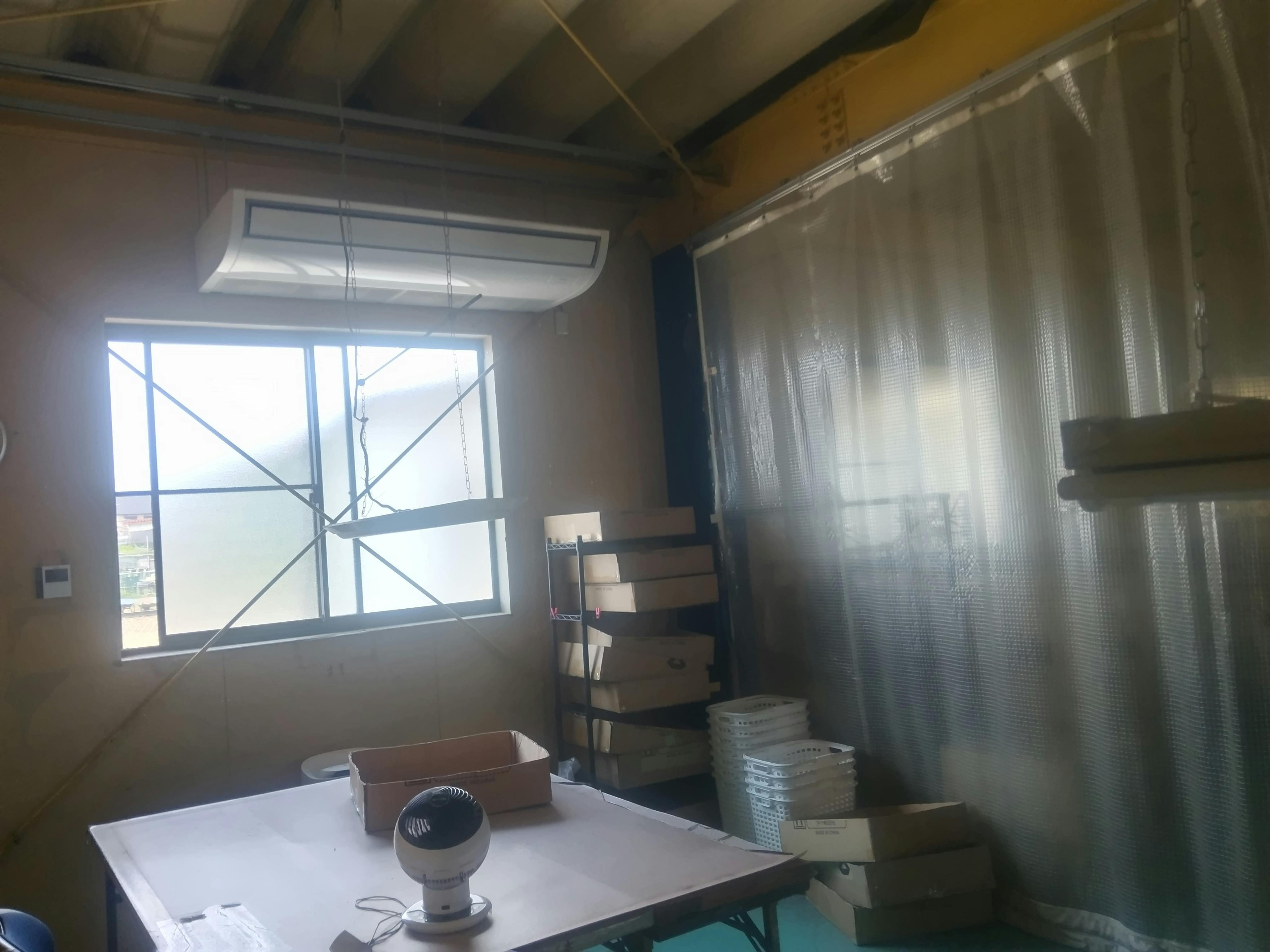 倉庫の一部を割愛し、ビニールカーテンで仕切って作業室を拡大した部屋です。