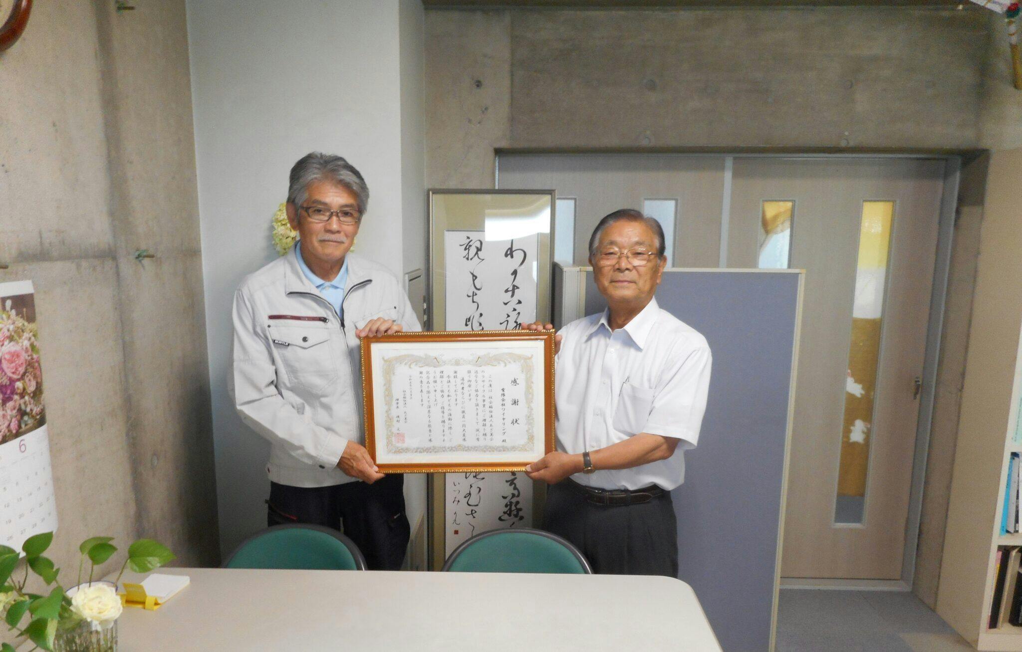 協力会社様に感謝増を贈呈 ※写真右磯村
