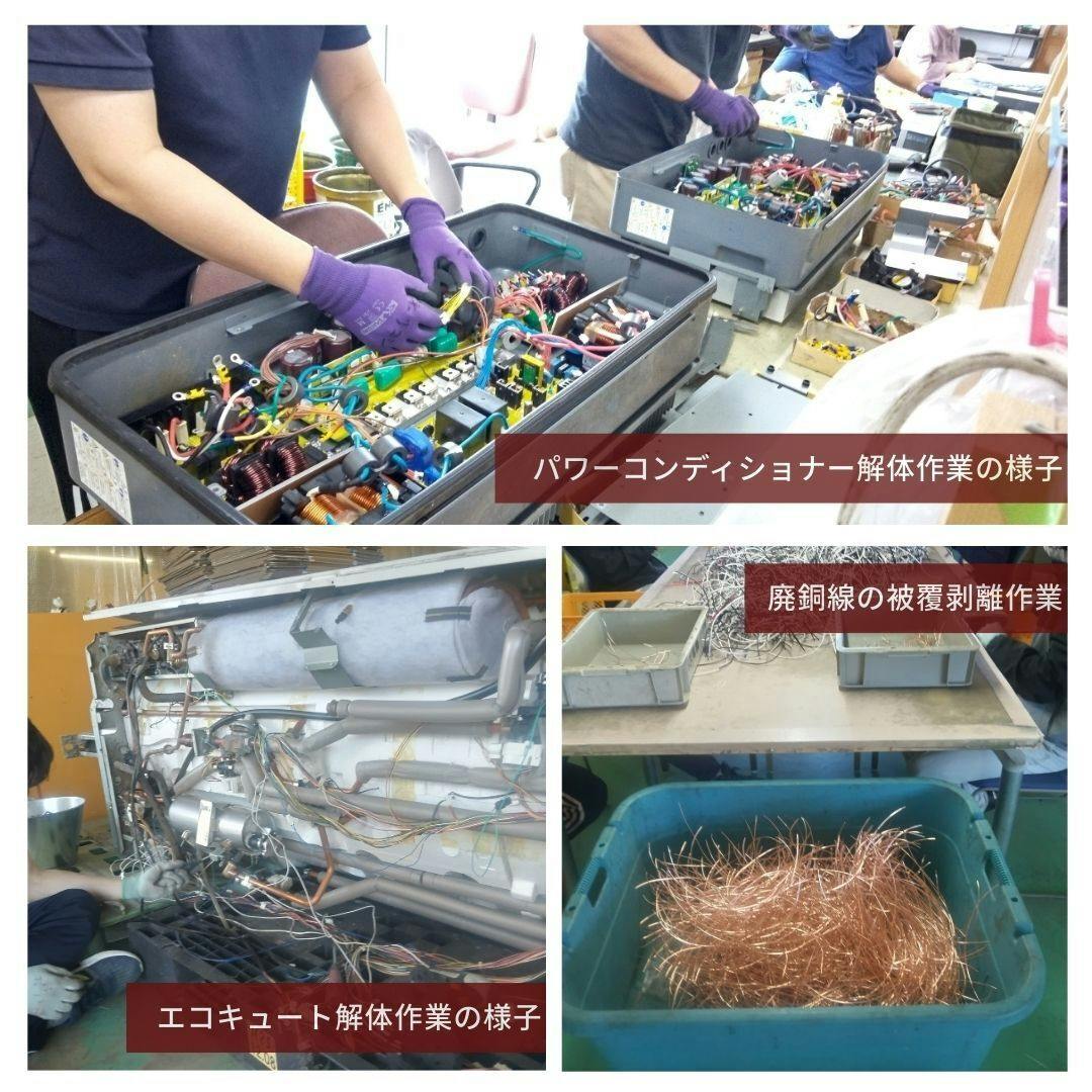 大型家電の解体作業をする部屋は、作業量の増大・売上金額の増大に伴い