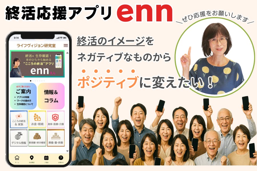 ご支援、そしてSNSでのシェアで、私たちと一緒に終活応援アプリennとポジティブな終活を広げていただけませんか?