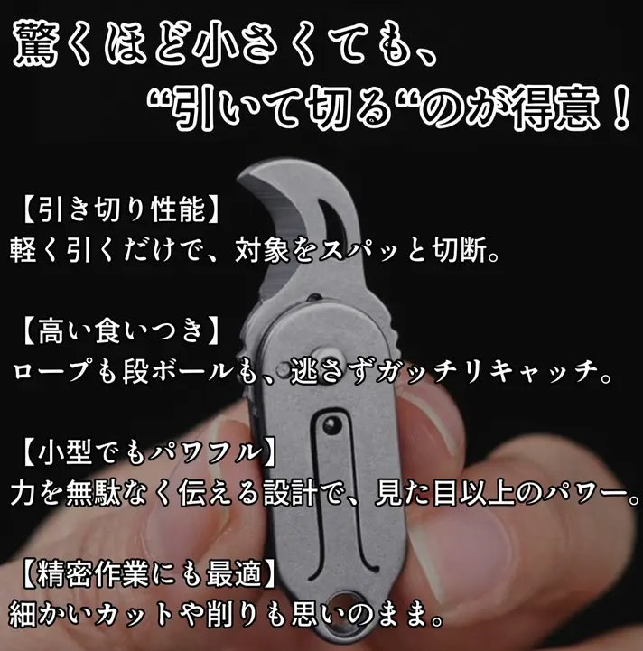 鎌の象徴的な曲線にインスピレーションを得て、このミニブレードは精密さと機能性をコンパクトな形状に融合させました。