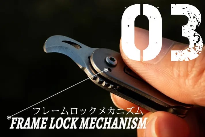 フレームロック機構により、開いた状態でも閉じた状態でも、刃はしっかりと固定されます。