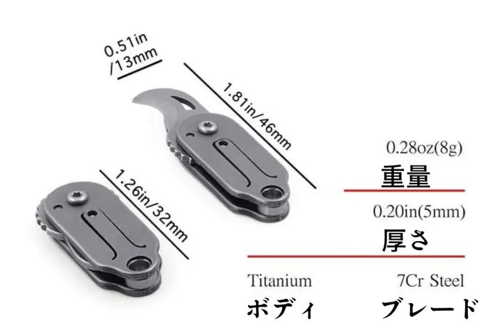 重さはわずか8g、開いたときの長さはわずか46mmの ScytheBlade は、スリムで超軽量なため、ポケットやキーホルダーにぴったり収まり、全く重さを感じさせません。