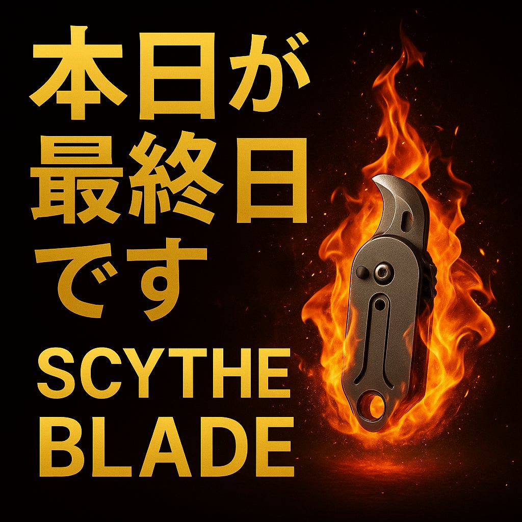 「Scythe Blade」プロジェクト、まもなく終了!ここまでたくさんの応援、本当にありがとうございます。現在、残りわずかのリターンとなっています。https://camp-fire.jp/projects/878055/view【※これが本当に最後のチャンスです】迷っていた方は、ぜひこの瞬間を逃さないでください!あなたの手のひらに、この「切れ味の衝撃」を。