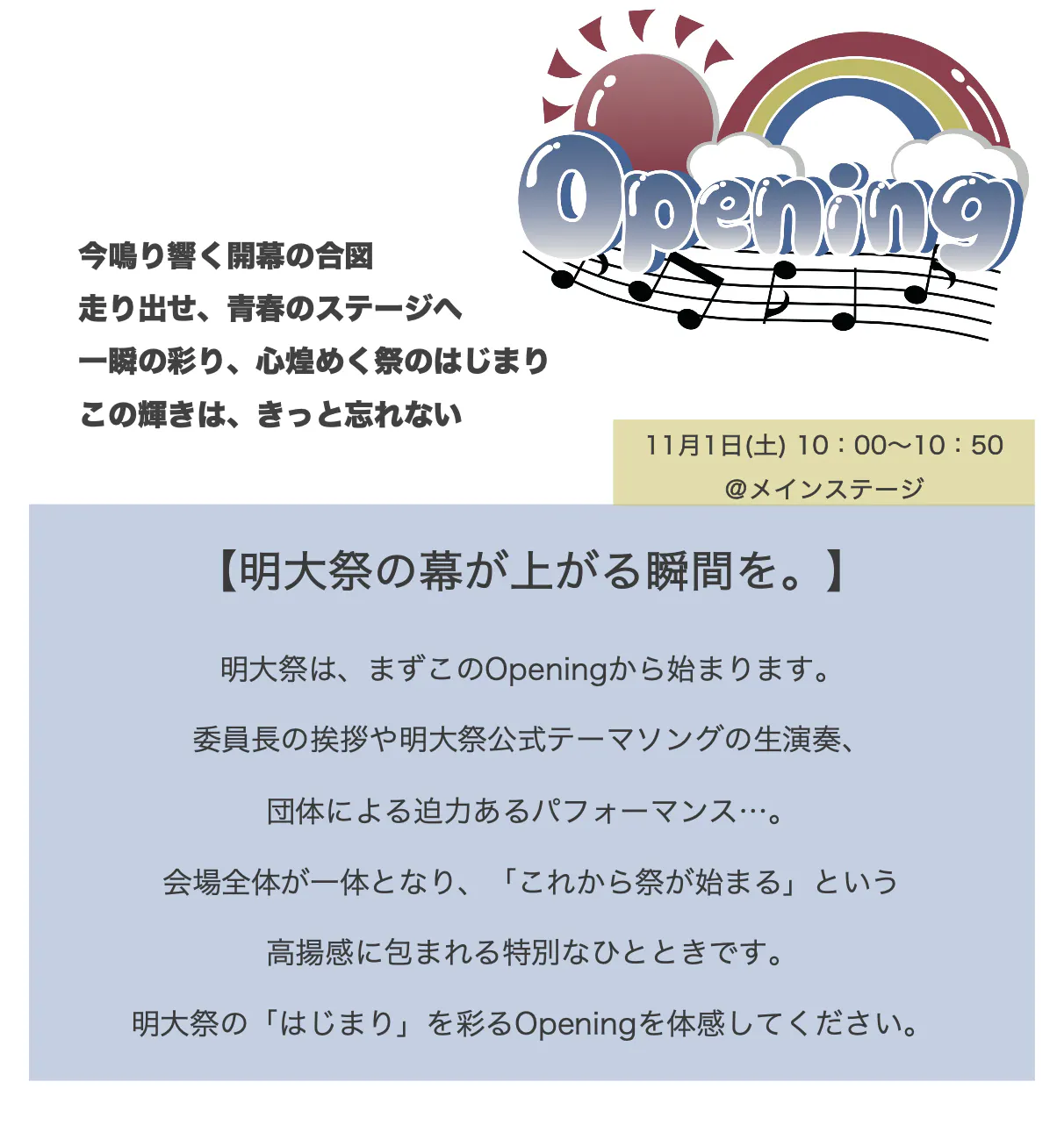 より一層明大祭を盛り上げるべく、みなさまのご参加を心よりお待ちしております。