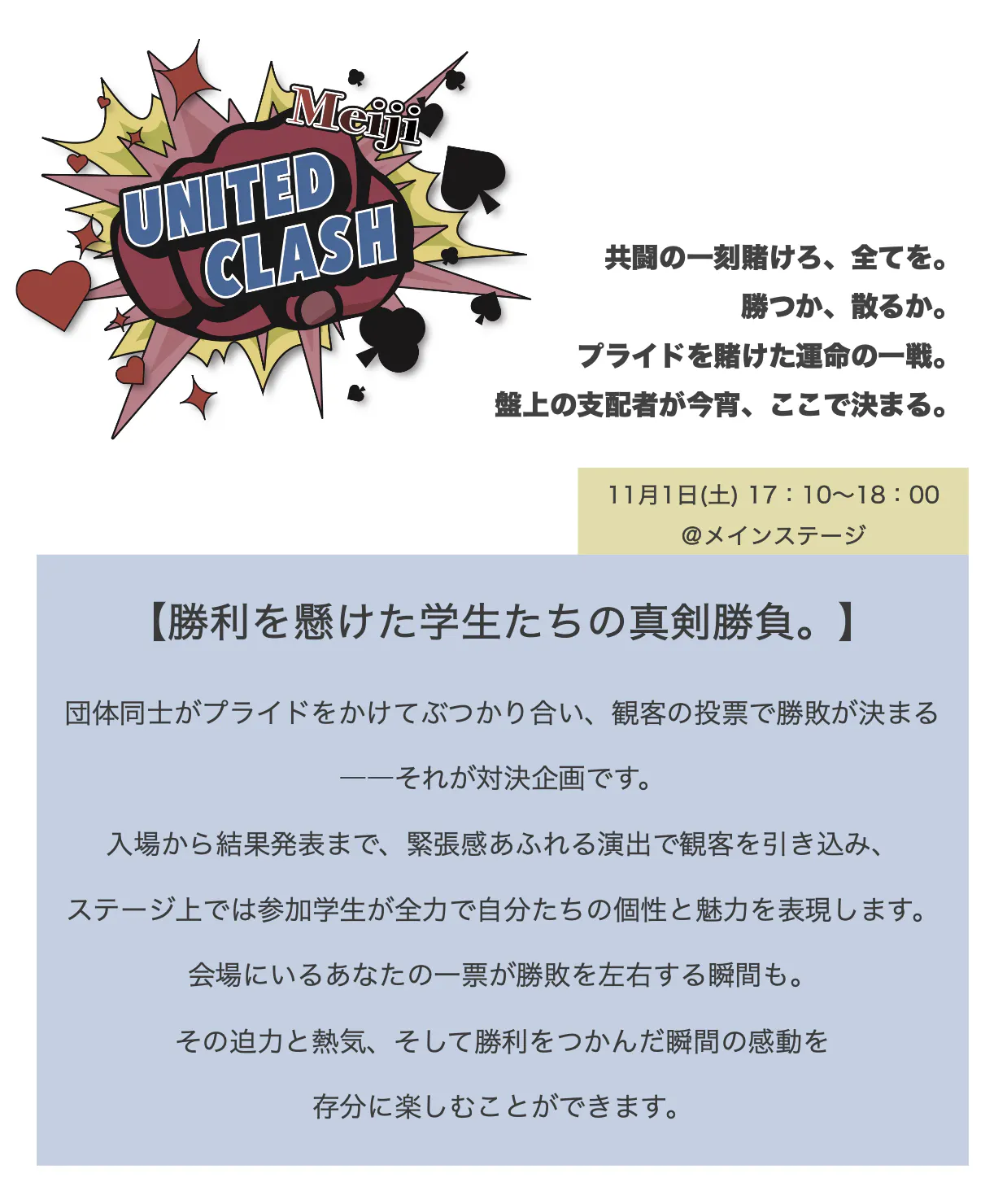 11月1日(土) 明大祭【Opening、Meiji United Clash】