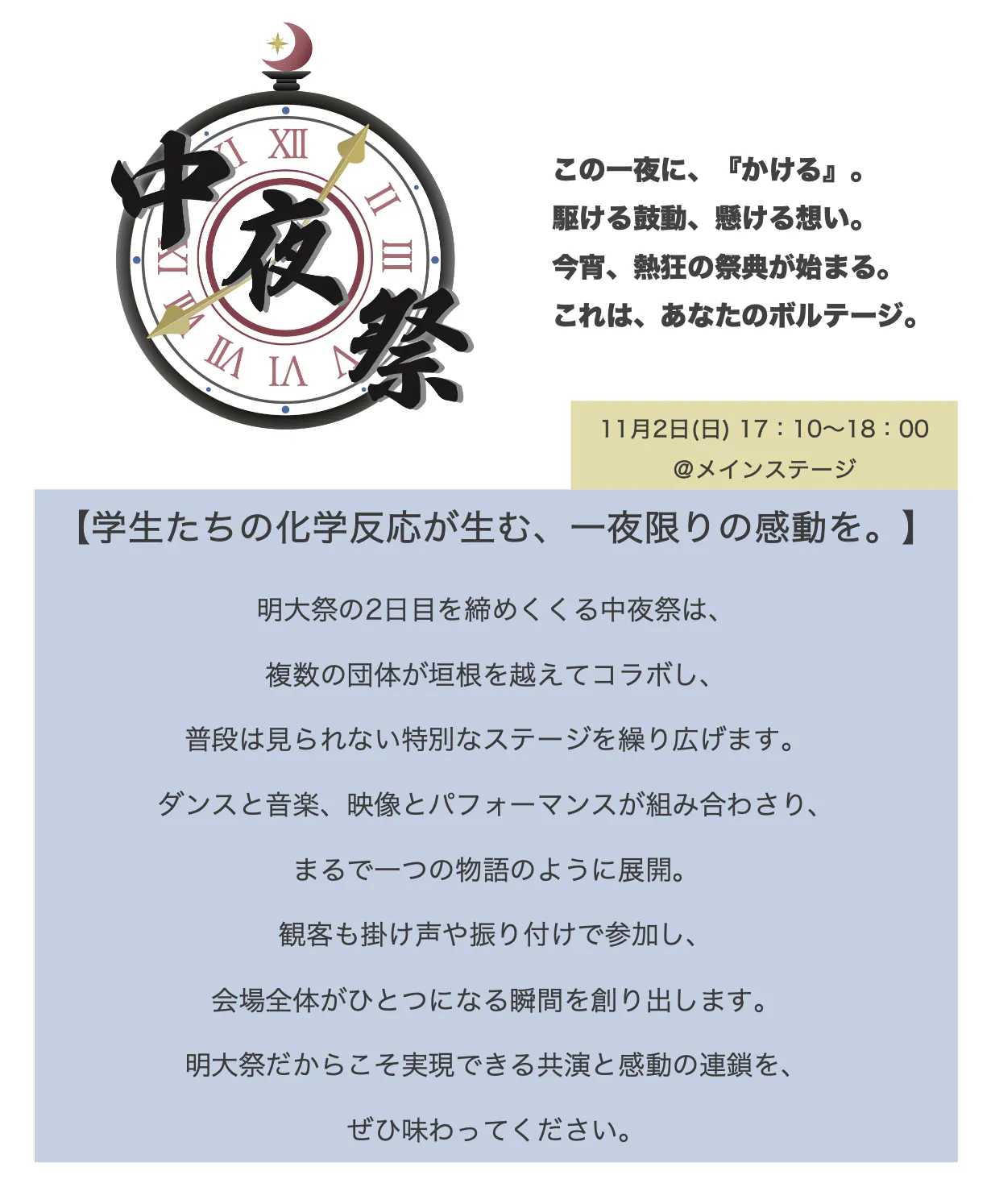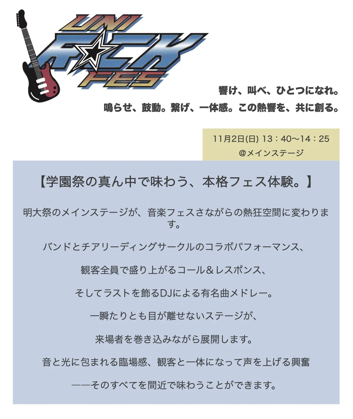 11月2日(日) 明大祭【Luminous Stage、UNI ROCK FES、中夜祭】