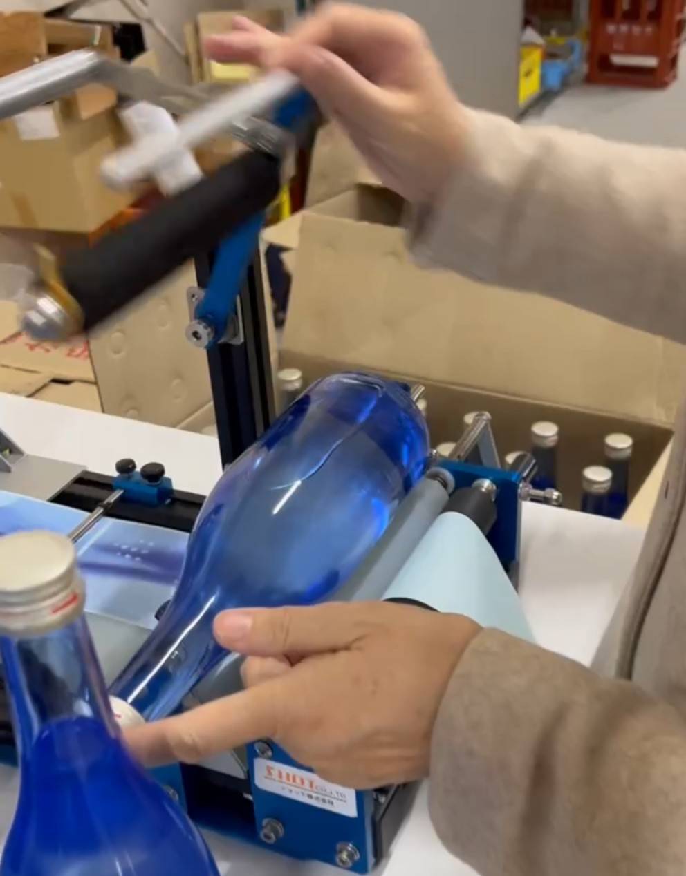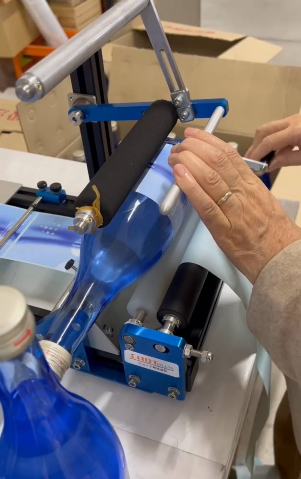 ラベル貼りの機械を回している動画はこちらから見ることができます