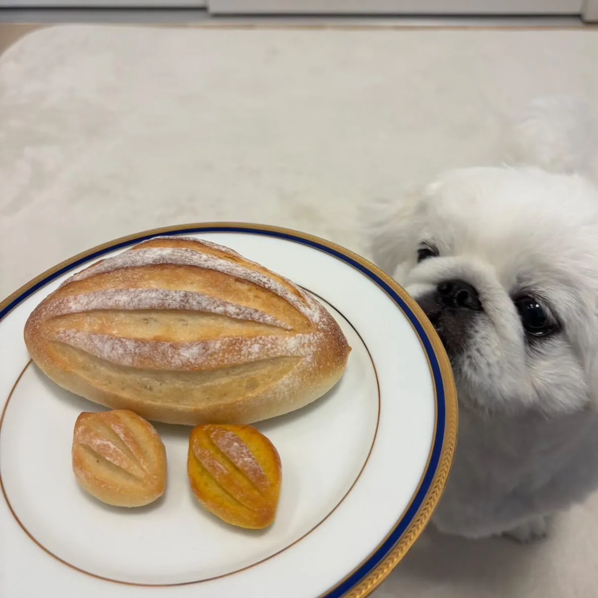 細かくしてドッグフードにトッピングしたら、最初警戒笑してましたが、ひとつずつ床に置いては味見、おいしかったみたいでそれからはパンだけ先に食べてました☺️
