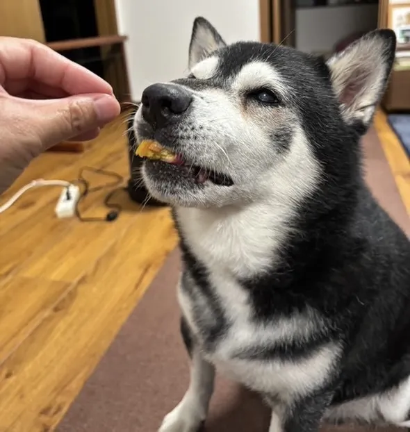 封を開けた時にチャックがクンクンと嗅いできて、早く早くっと言わんばかりに鼻を付けて来ました