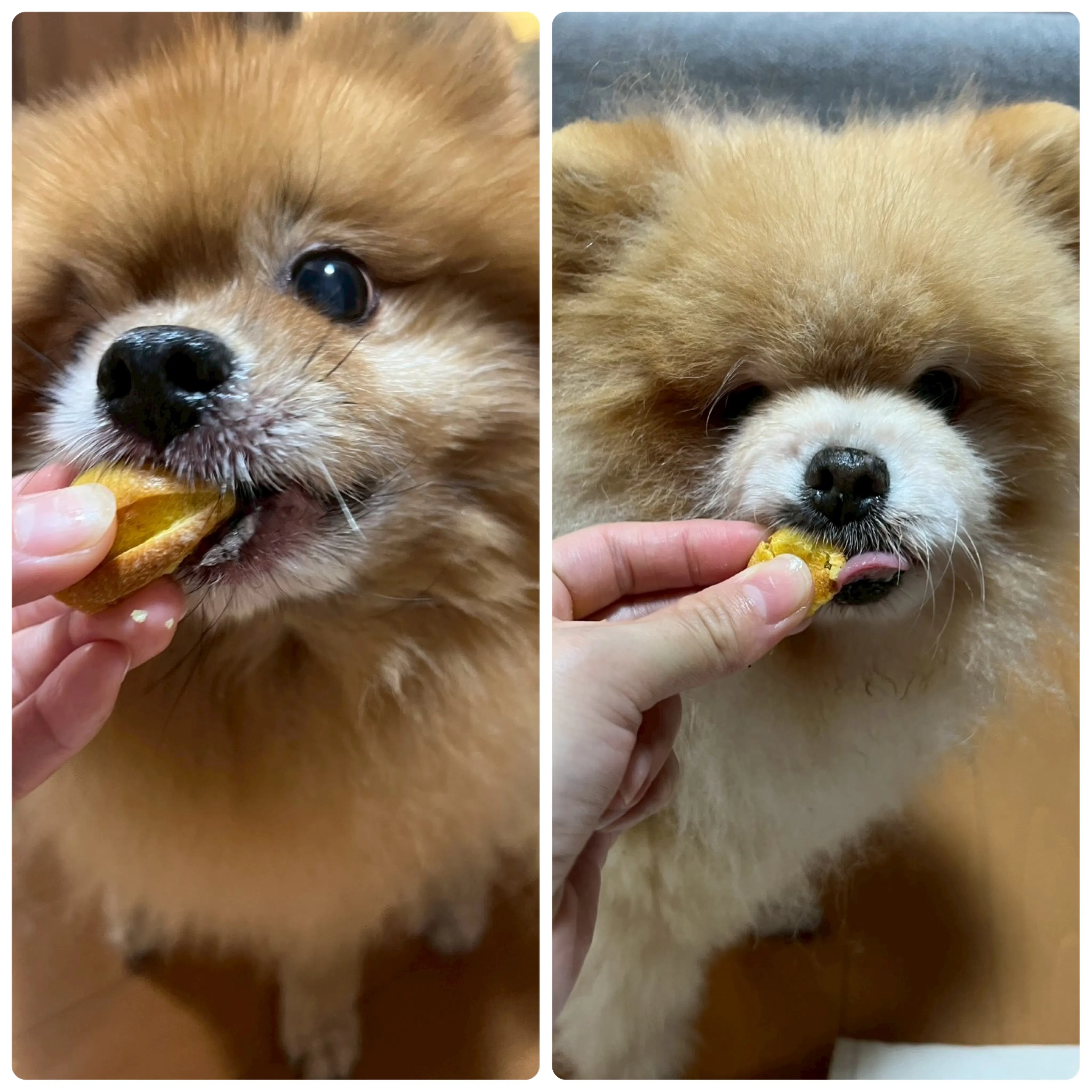 一口食べるとまん丸のおめめが更にまん丸になり、もっともっととおねだりしてきました