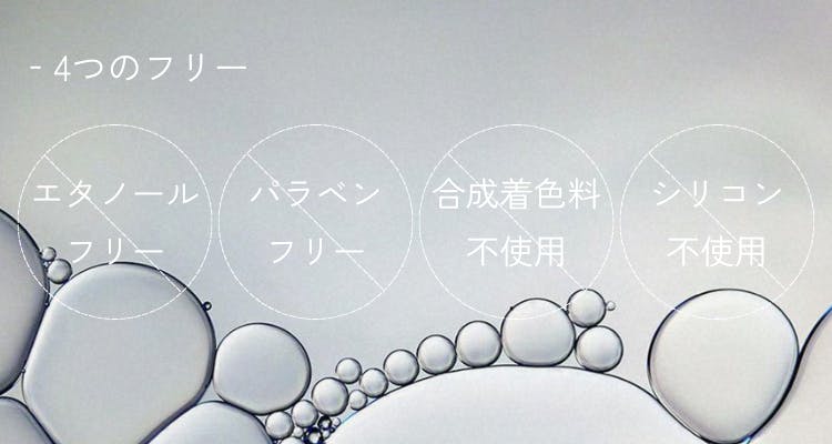 香水って聞くと「肌に刺激が強そう」と思われるかもしれないですが、4つのフリー処方を実現しています。