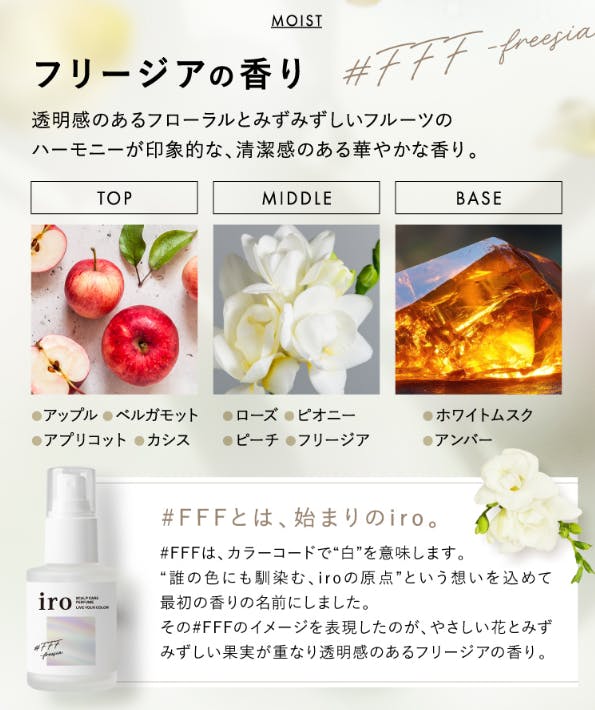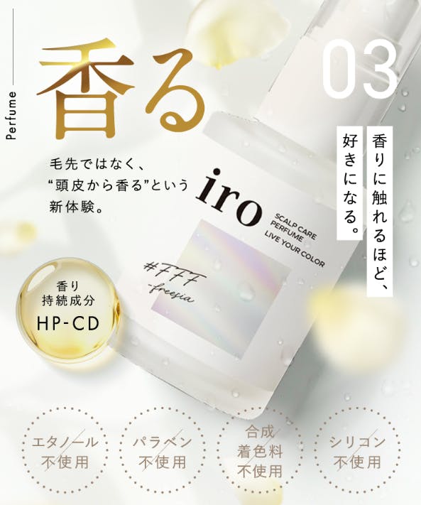そんな中「iro」は、香料のプロ企業様のご協力により、化粧品のなかではトップクラスに多い 2%の香料の配合に成功。