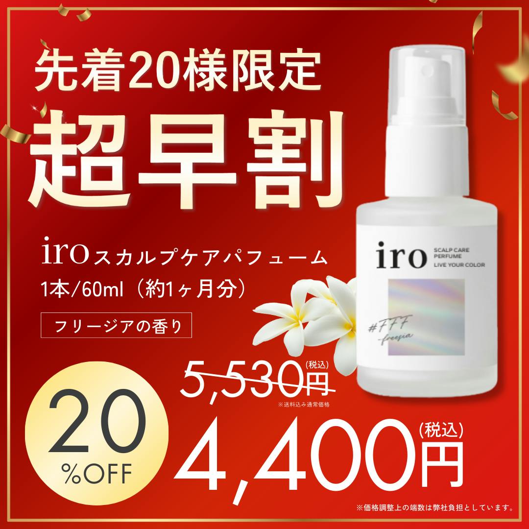 iroは美容成分を19種類も配合で頭皮ケアがこれ1本で完結して、通常価格は約1ヶ月分 5,530円(送料・税込)。ですが、できるだけ多くの方にiroを手に取っていただきたい。そんな想いから、通常販売では実現できない、クラウドファンディング限定の特別価格をご用意しました。