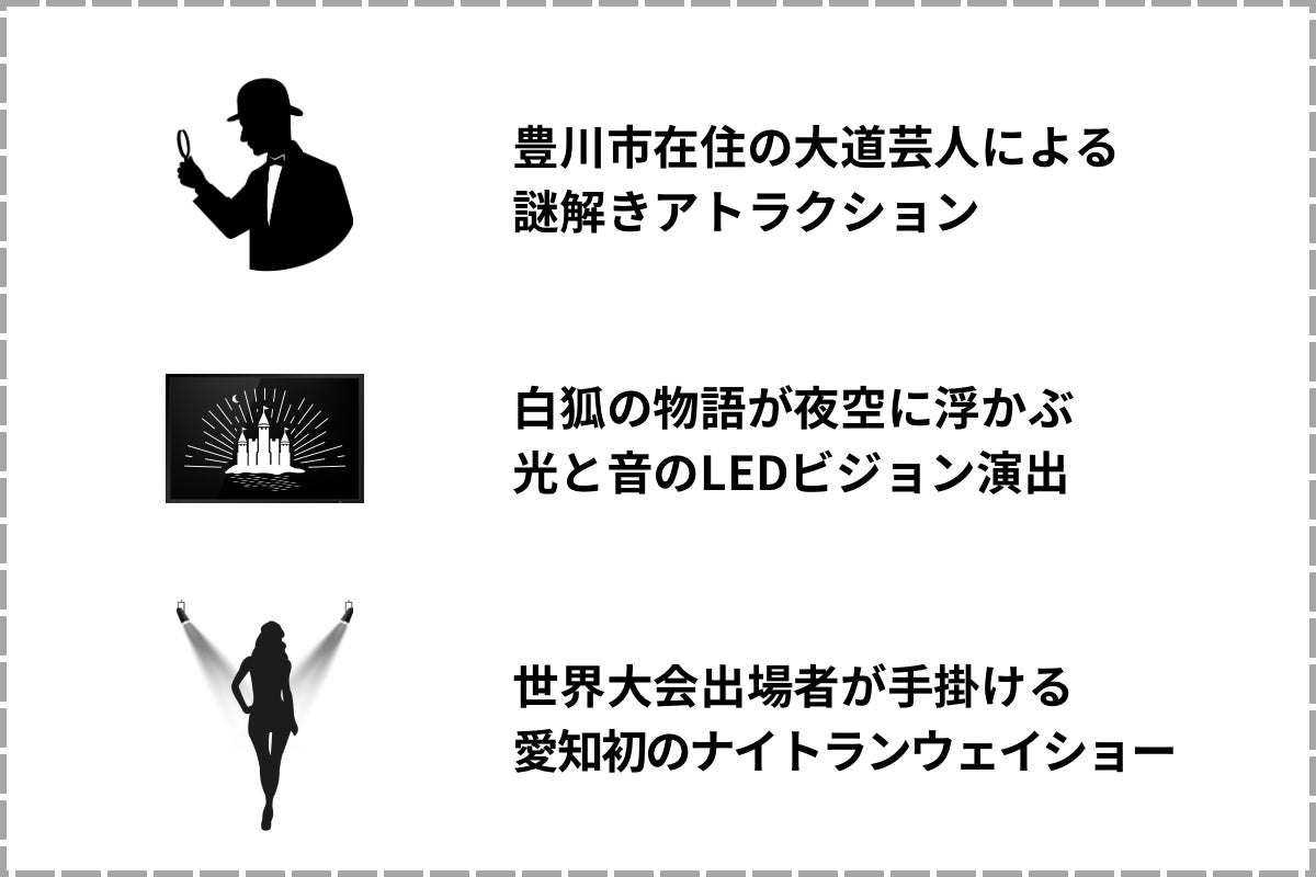 今年は、これまでのライトアップや夜店に加え、次のような“わくわくする仕掛け”を企画しています!