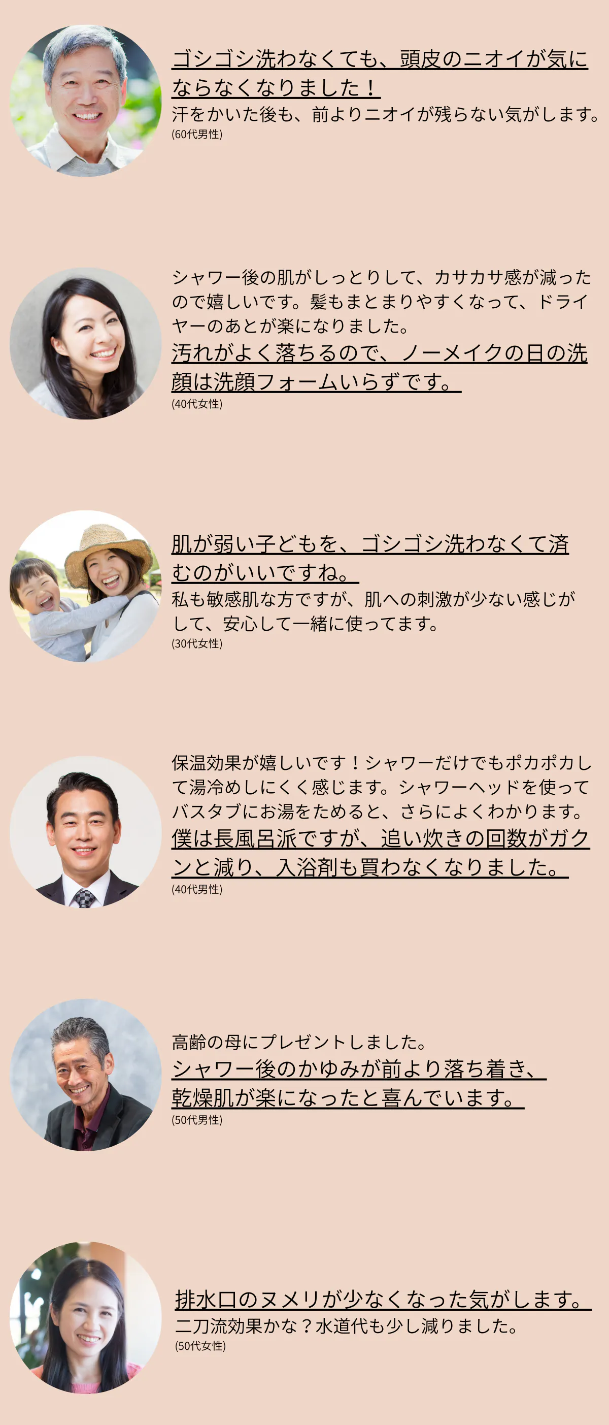 「ニオイが消えた!」「タオルがふっくらした」など喜びの声が多数その成功と応援の声が、今回のシャワーヘッド版SENREN開発のきっかけとなりました。