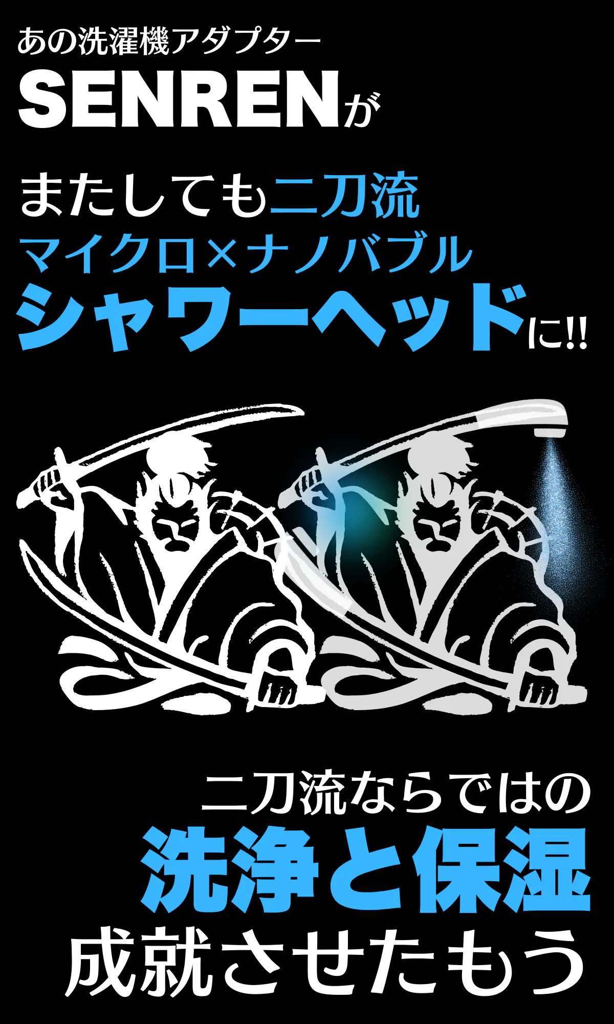 マイクロバブル×ナノバブルの二刀流洗濯機アダプターSENRENが、ついに二刀流シャワーヘッドになって参上しました。