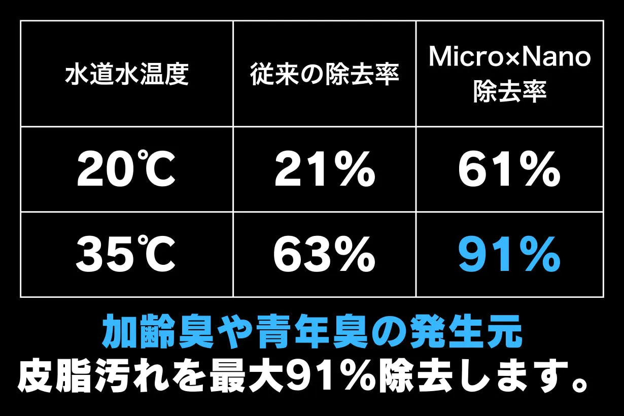 マイクロバブル:肌表面の皮脂汚れや臭いの原因を浮かせて除去