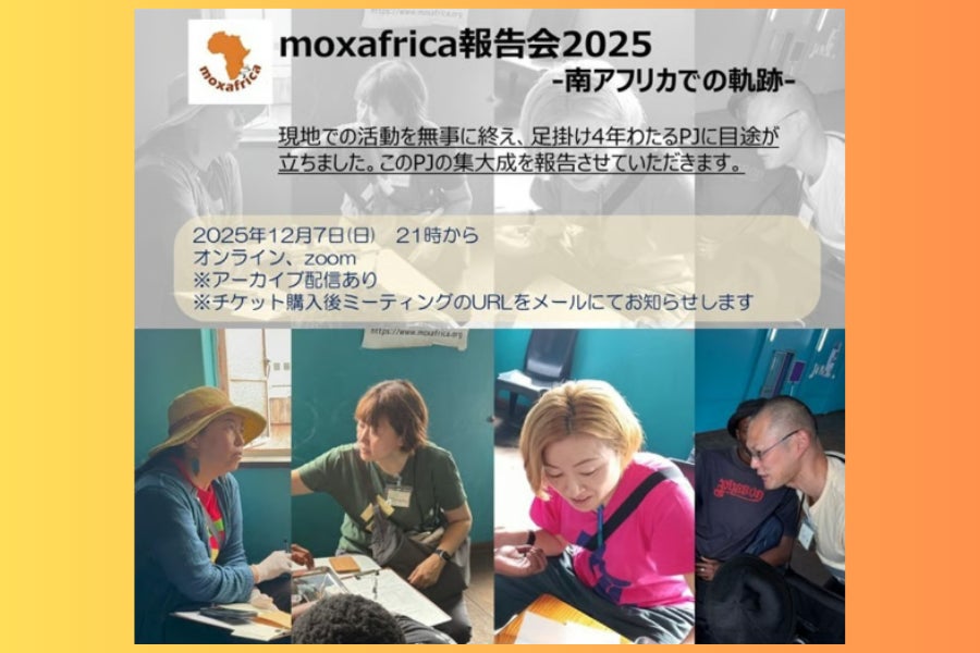 あけましておめでとうございます。日頃より本プロジェクトに多大なるご支援を賜り、心より感謝申し上げます。南アフリカでの活動を通じて、私たちは改めて「お灸(Moxa)」の有効性と、その可能性を強く実感しました。この素晴らしい療法を、より多くの方々に知っていただくため、このたびグローバルサミットを開催する運びとなりました。Moxafrica イギリス本部にて、理事であるマーリン・ヤング氏、伊田屋幸子氏とともに、"3日間にわたるライブ配信による「グローバル Moxa サミット」"を開催いたします。お灸について、多くの事を学べる3日間になるでしょう。ご興味のある方は、是非ご参加ください。お待ちしています。【開催日程】・1日目:2026年1月24日(土)18:00〜22:00(英国時間/GMT) (太平洋標準時 10:00〜14:00)・2日目:2026年1月31日(土)同時刻・3日目:2026年2月7日(土)同時刻※日本時間では、いずれも翌日午前3時開始となります。※アーカイブ配信もございます。詳細は、下記リンクよりご確認ください。https://www.moxafrica.org/globalmoxasummit