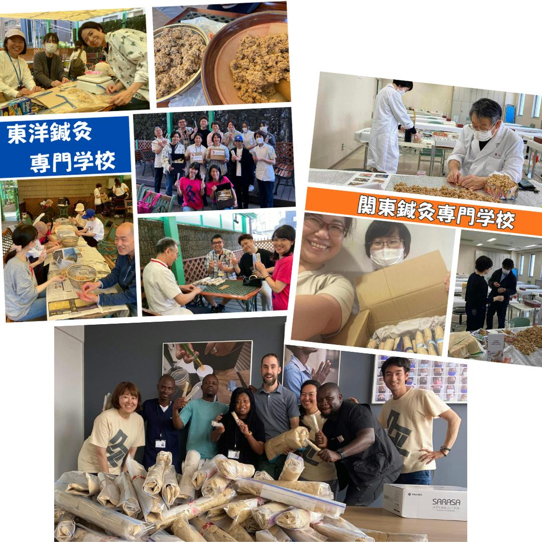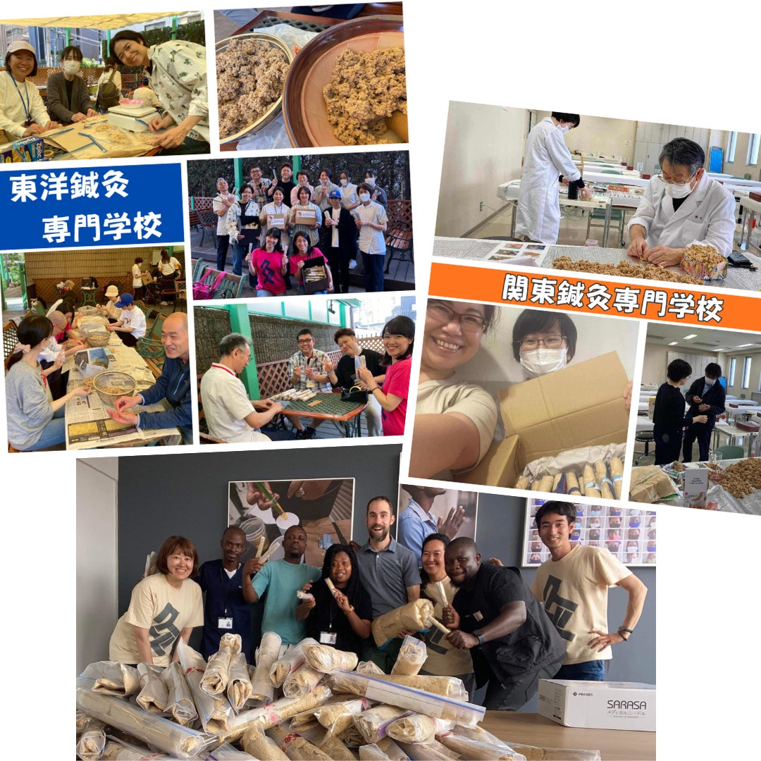鍼灸の学校では、鍼灸師になるためにひたすら艾(もぐさ)をひねります。その練習に使った艾をふるい直し復活させるというモクサアフリカボランティアをしてくださっている学校が現在2校あります。東洋鍼灸専門学校では、もう8年目の活動になります。年に2回集まり、在校生、卒業生、先生、事務の方が入れ替わりで立ち寄ってくださり、お灸キットを作ってくれています。そして今年からは、関東鍼灸専門学校も手を挙げてくださり、お灸キットを作ってモクサアフリカへ届けてくれました。そのお灸キットは、海を渡って南アフリカへ届けさせていただいています。艾をジッパー付き袋に入れて、線香が折れない様に巻いて一つ一つ丁寧に梱包されたお灸キットをみて、現地の方は大変喜ばれました。今年も皆さんの想いを届けてきます!艾を再生させる作業もとても手間暇かかっています。それについては、後日お伝えしたいと思います。
