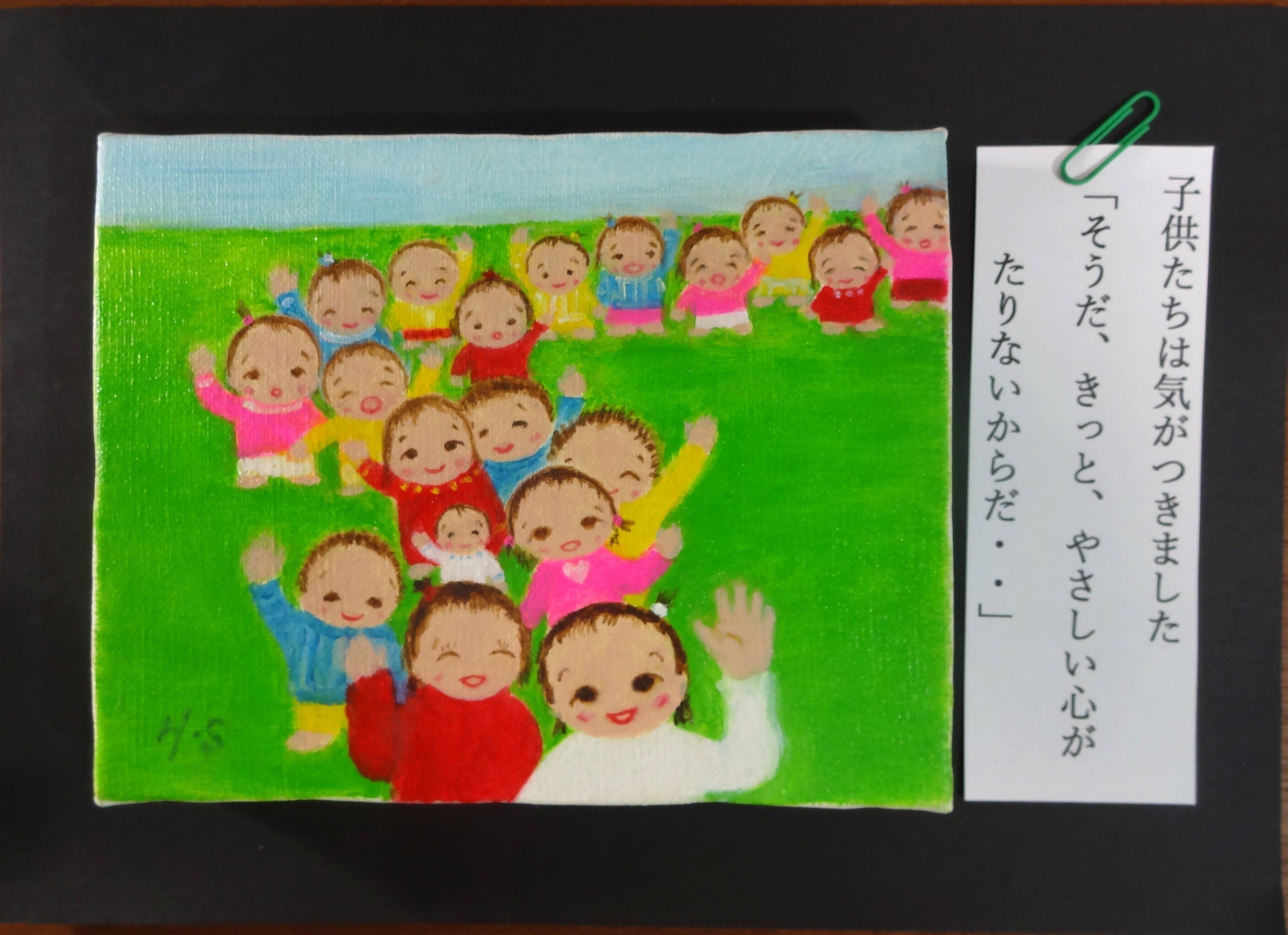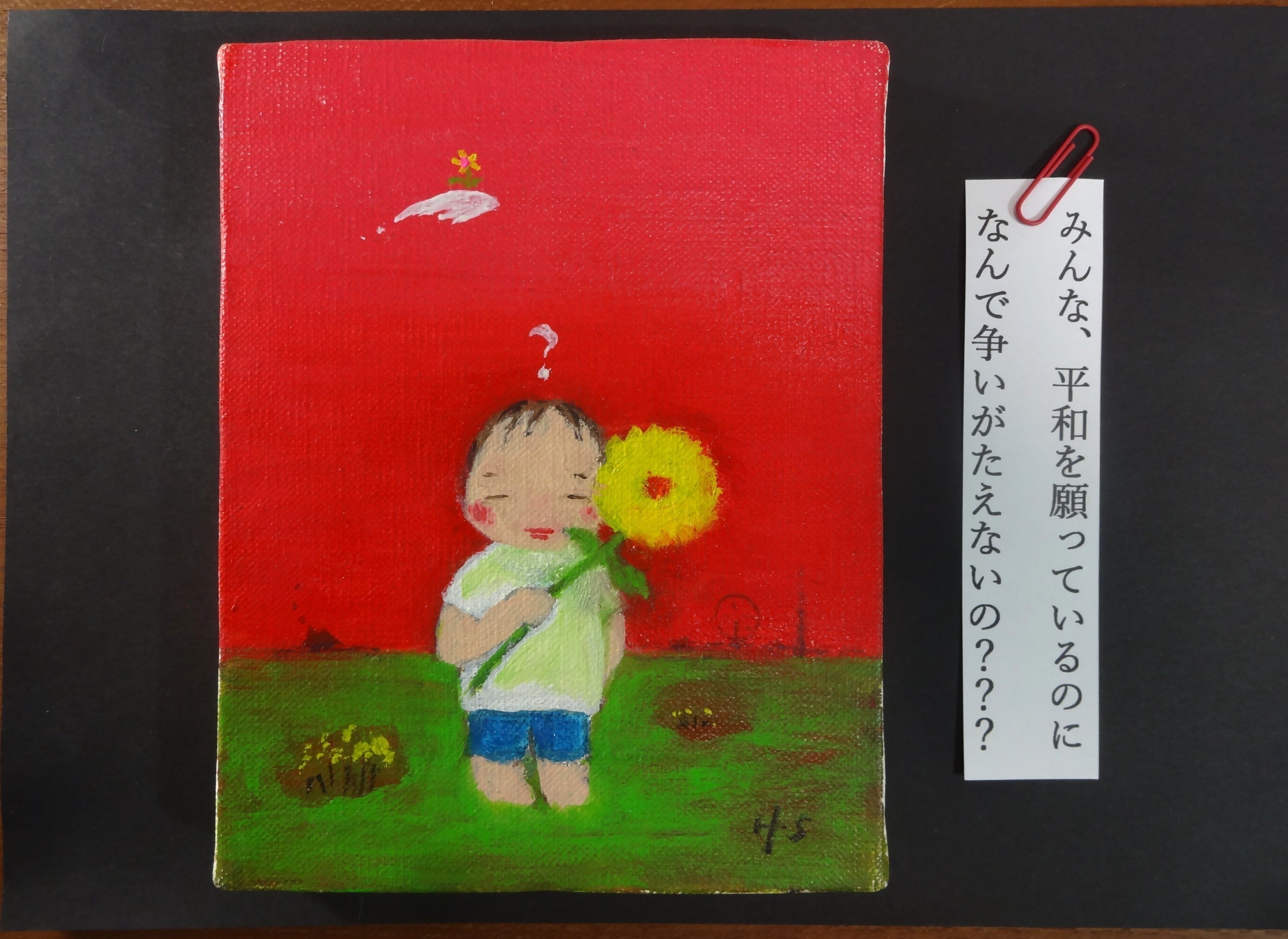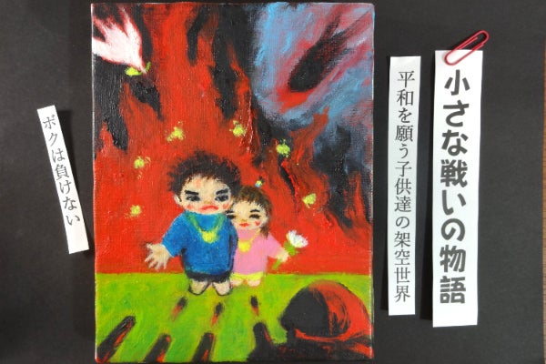 永年描き続けている、平和を願う子供たちの架空世界「小さな戦いの物語」70点余りの油絵0号を是非、皆様に見て頂きたいと思います。